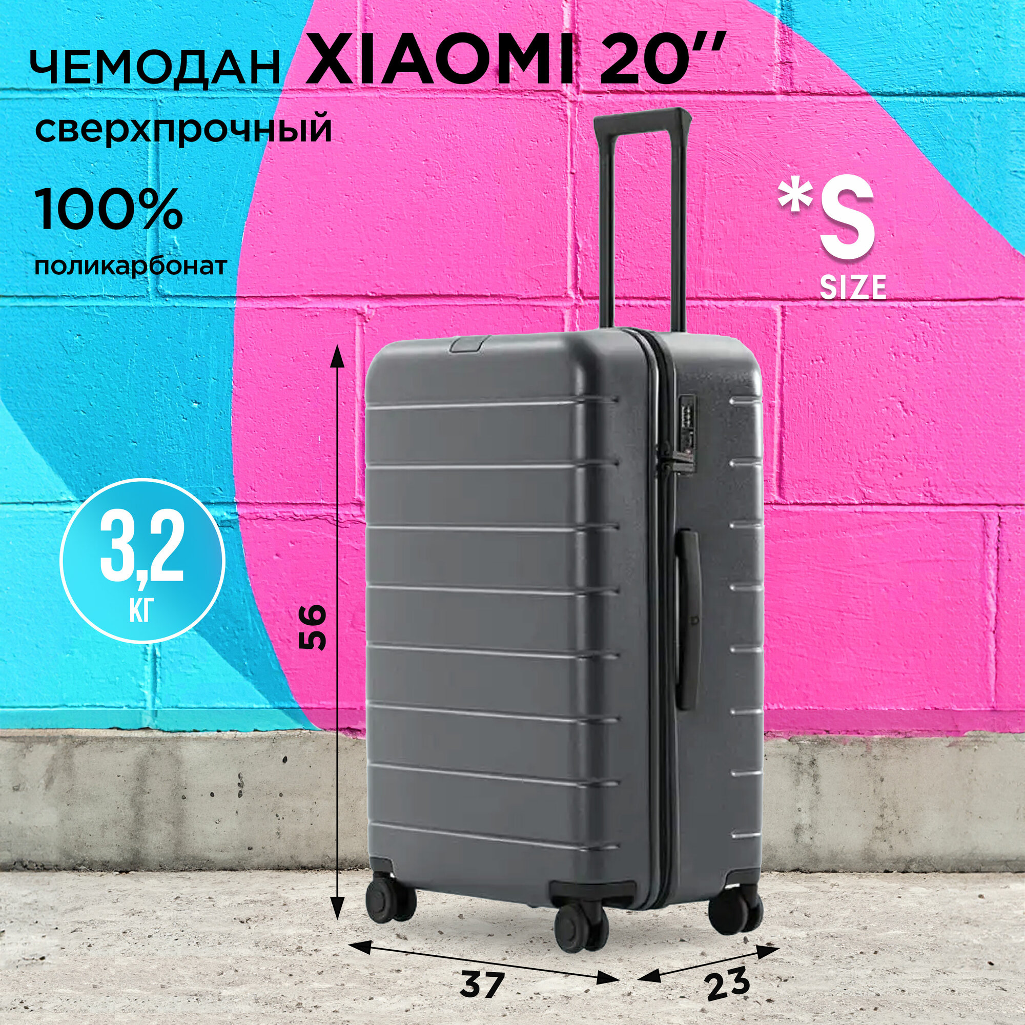 Чемодан Xiaomi, 39 л, размер S, серый информация: