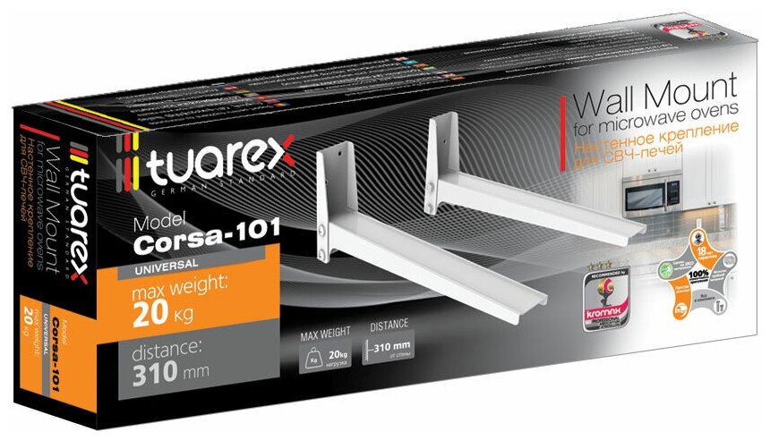Кронштейны, Tuarex CORSA-101w, Кронштейн для СВЧ 31см max 20 кг, от стены 31 см, Кр. стал. наст. для информация:
