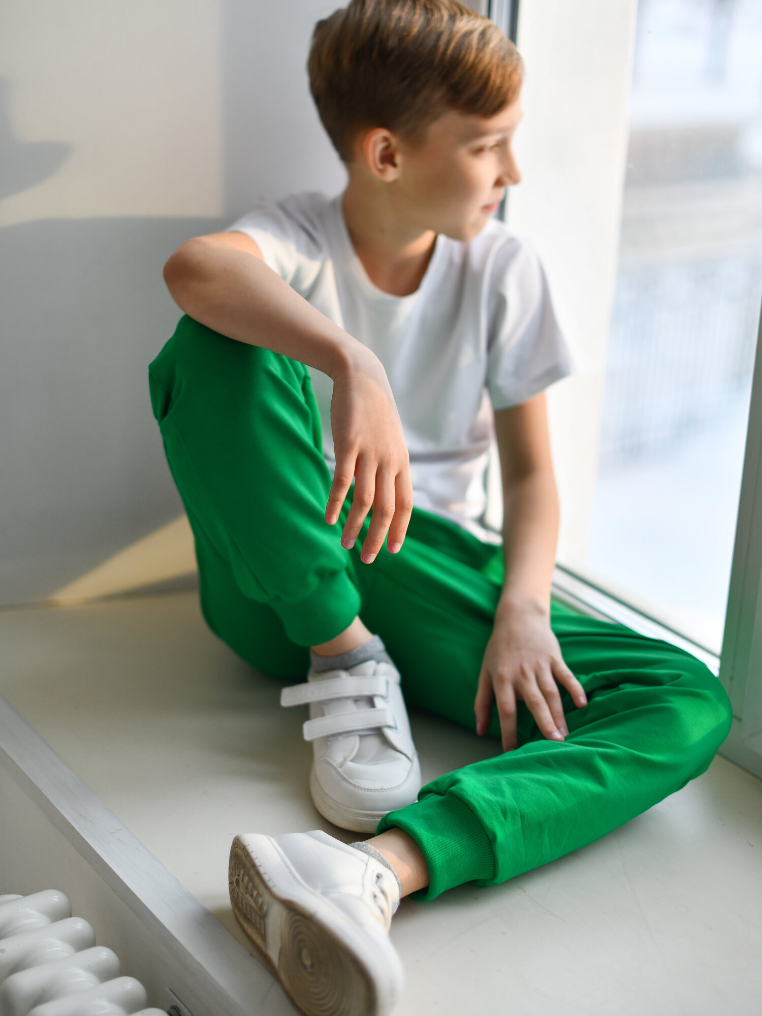 Детские спортивные брюки, джоггеры для мальчиков, цвет зеленый, размер 128