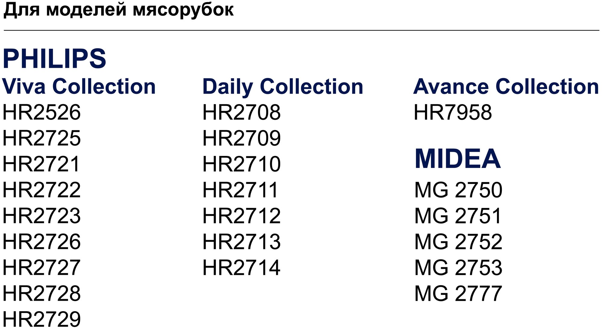 - Аксессуары для мясорубок, кухонных комбайнов, блендеров и миксеров