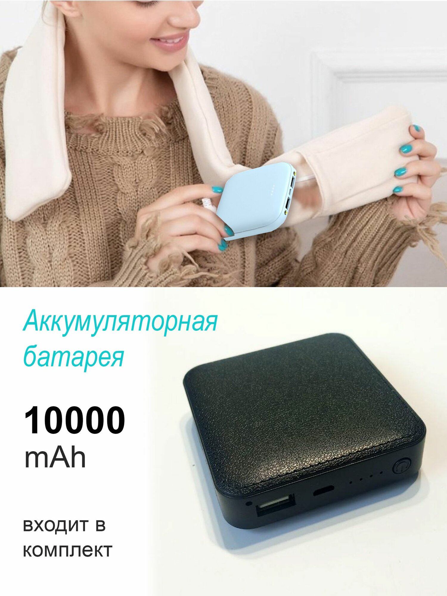 Умный шарф с подогревом меховой бежевый с powerbank 2 390 ₽