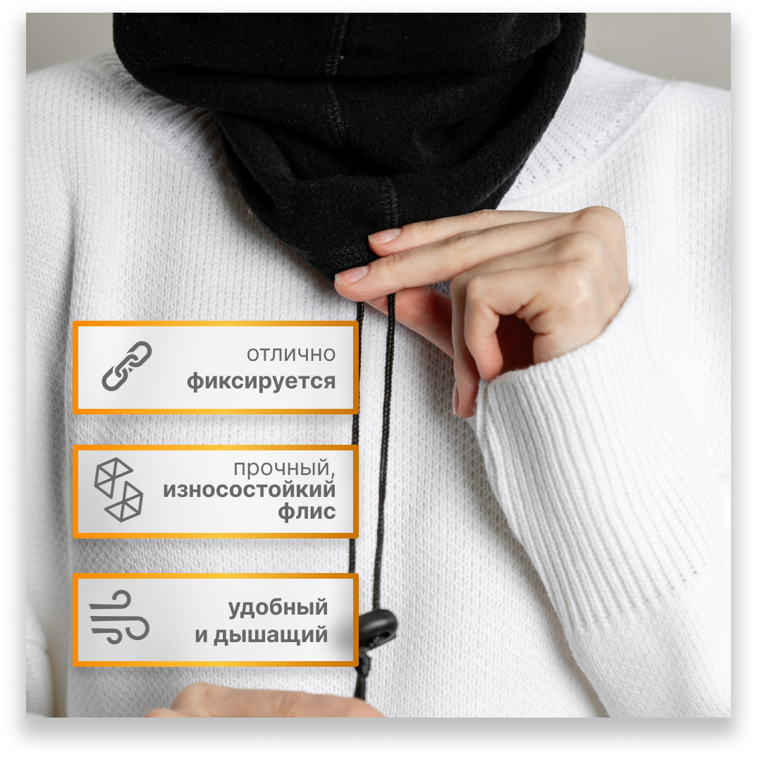 "Sportflix Black Noir" - шарф-снуд и балаклава для мужчин и женщин из флиса 426 ₽