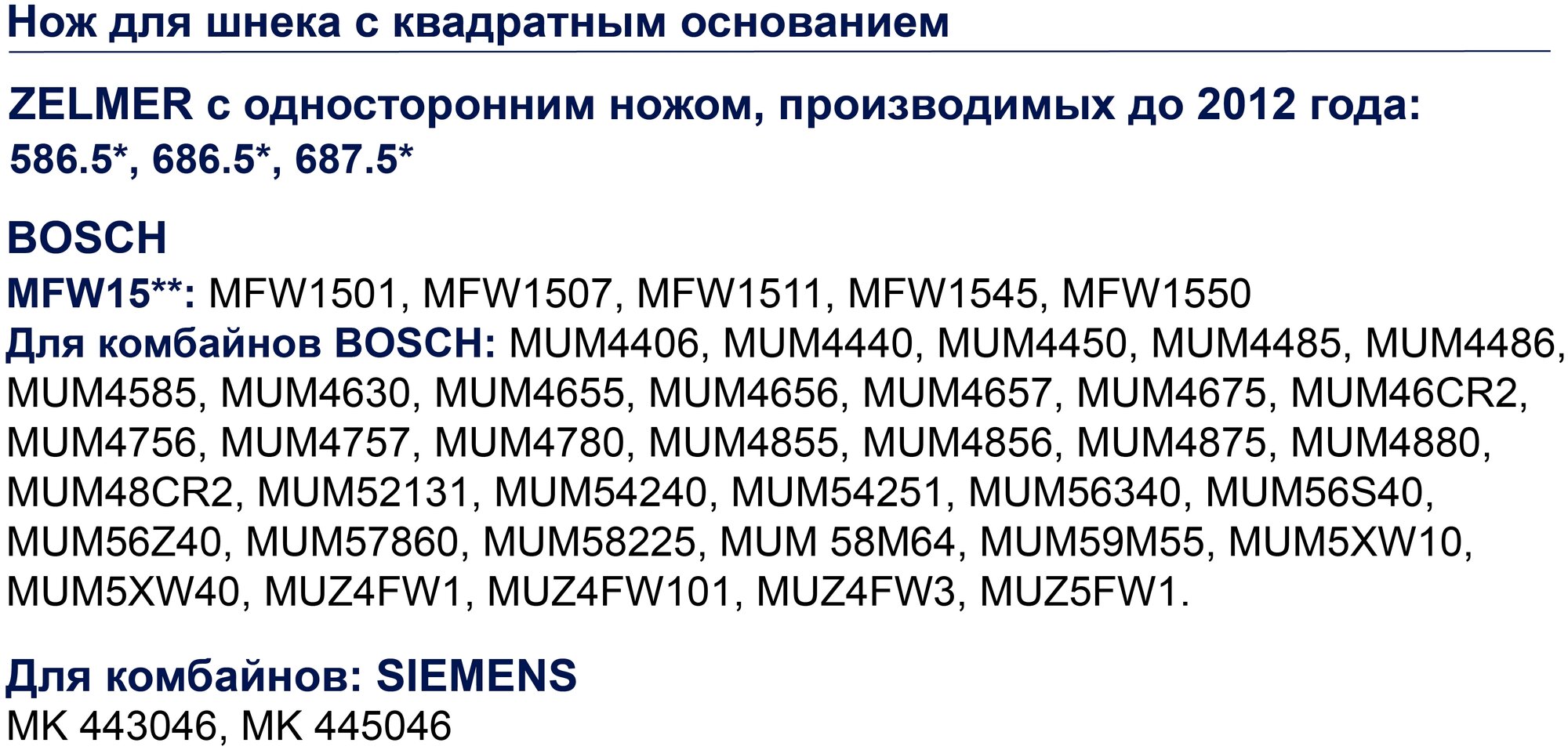 Нож для мясорубки Zelmer, Bosch, Siemens до 2012 года