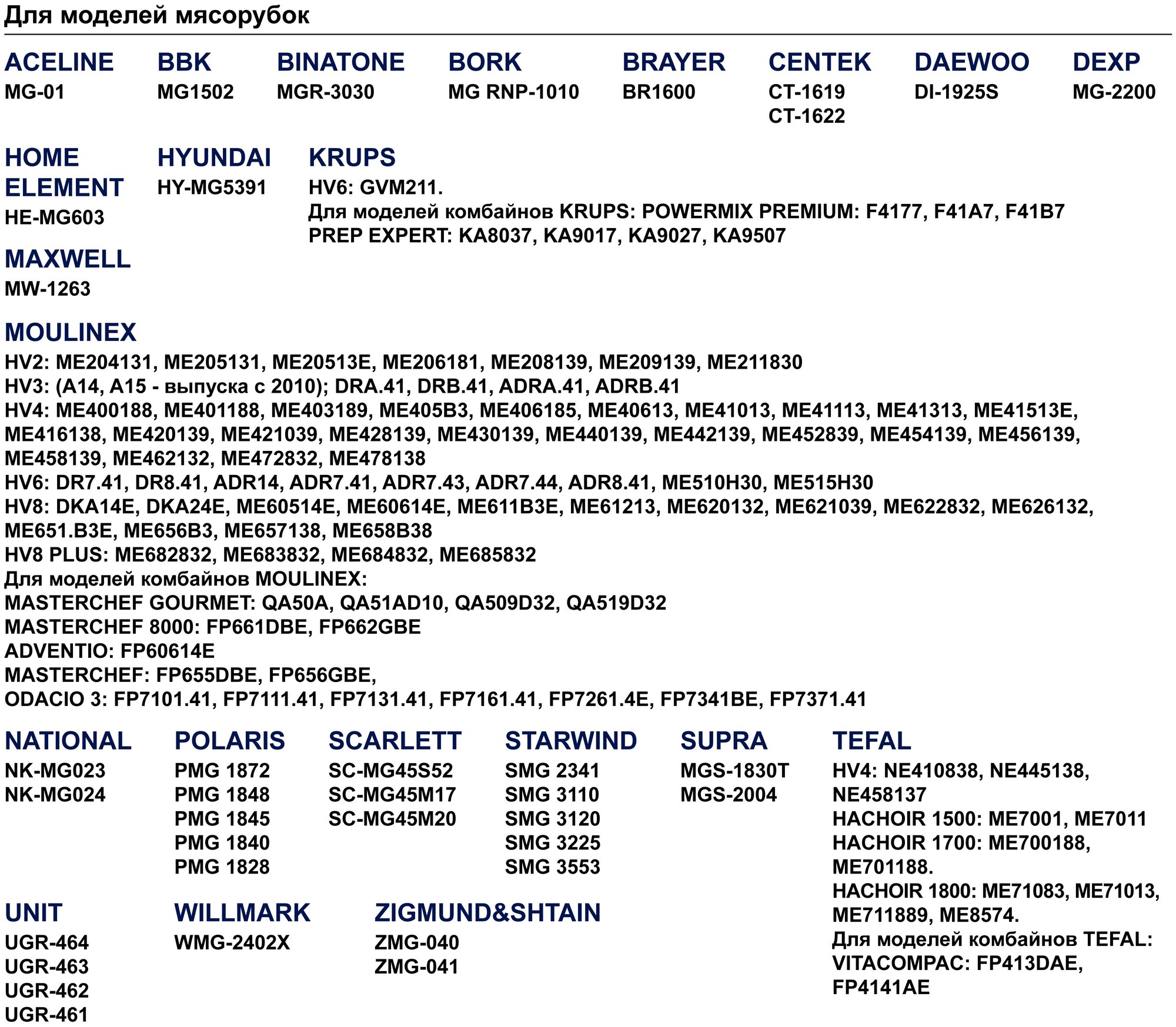 - Аксессуары для мясорубок, кухонных комбайнов, блендеров и миксеров