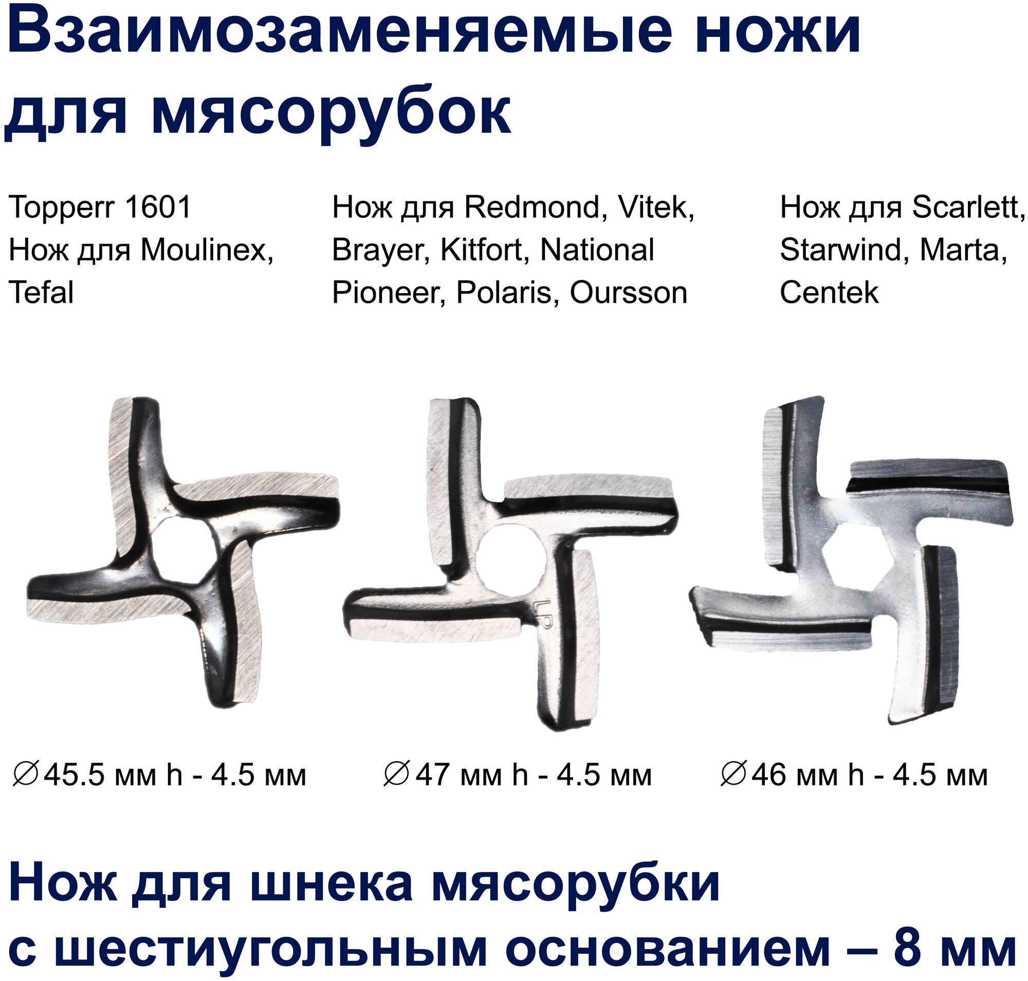 Topperr Нож для мясорубки: Moulinex, Tefal, Daewoo, Krups, Tefal, Starwind, Scarlett, Supra, Polaris, Bork, 1601