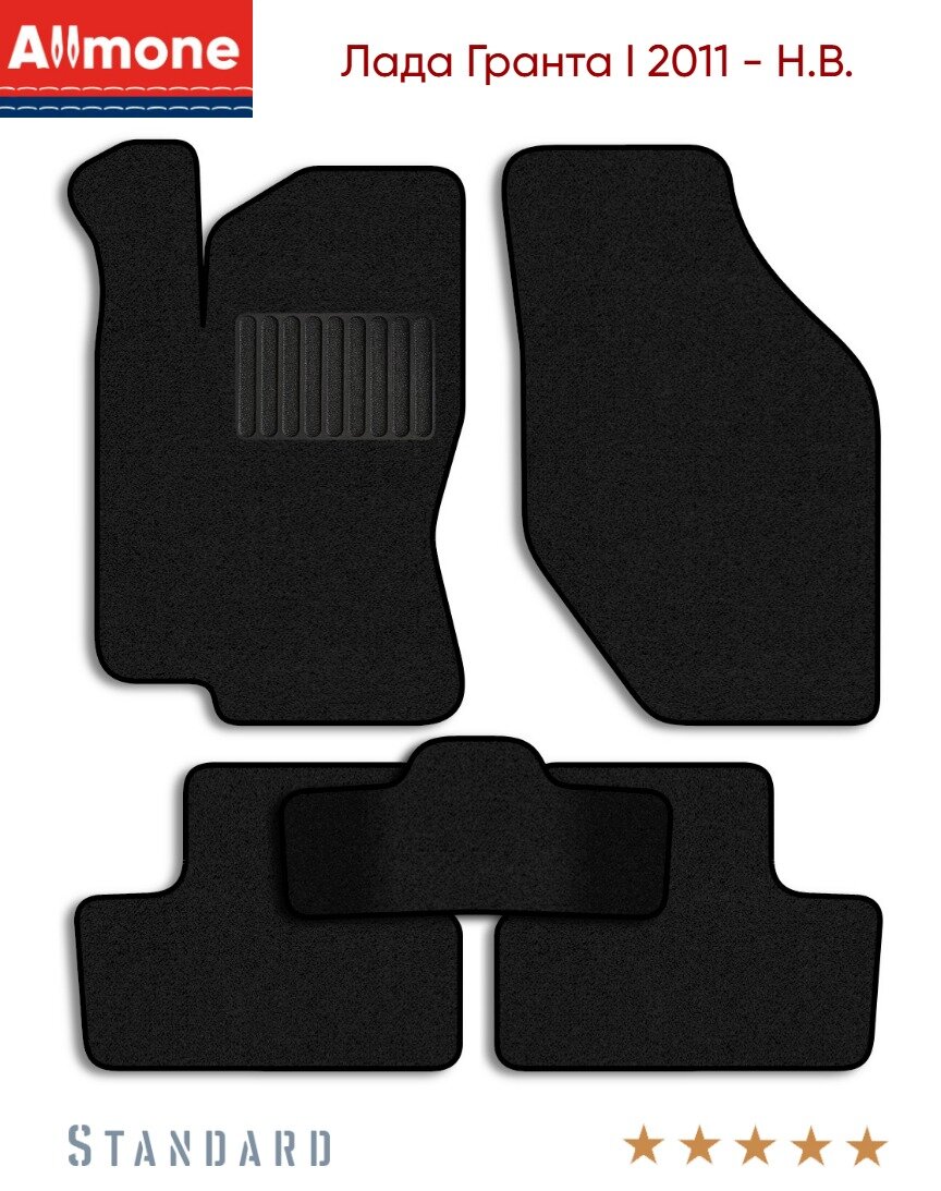Ворсовые автомобильные коврики в салон "Стандарт" для Лада Гранта 1 2011 - Н. В, черные, 5шт. / Lada Granta 1 информация: