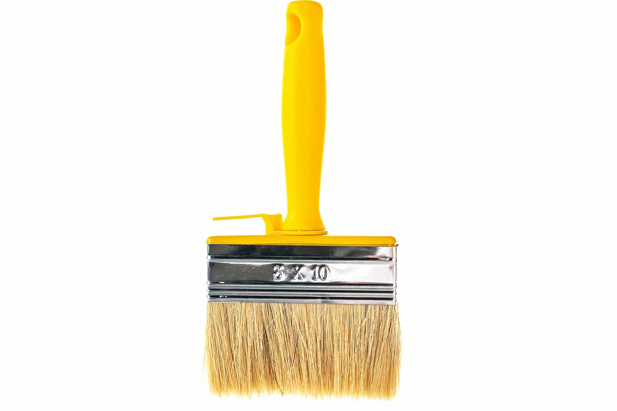 Кисть малярная флейцевая плоская 4" (101 мм), натуральная щетина, пластмассовая рукоятка, 1 штука/ кисточка для краски, лака, ЛКМ