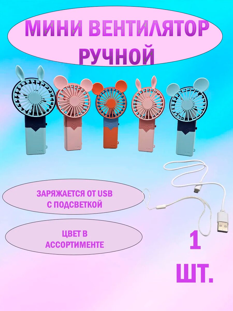 Портативный вентилятор ручной, настольный, с подсветкой информация: