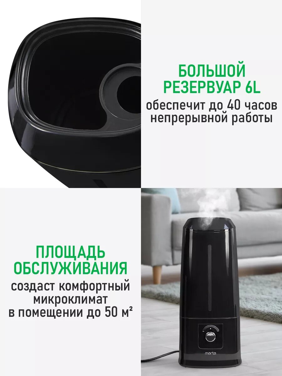 Отзывы на Увлажнитель воздуха ультразвуковой MARTA MT-HF4702A верхний залив антивирусная УФ - лампа черный жемчуг