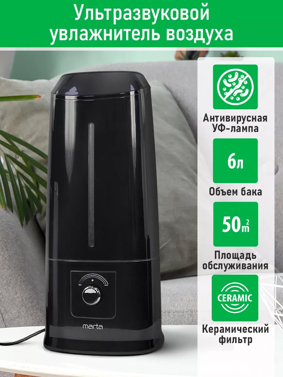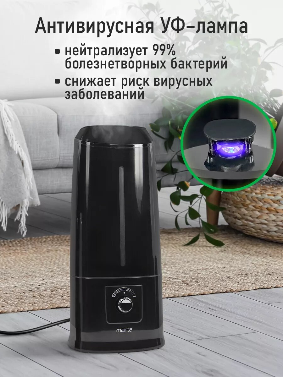 Увлажнитель воздуха ультразвуковой MARTA MT-HF4706A антивирусная УФ - лампа черный