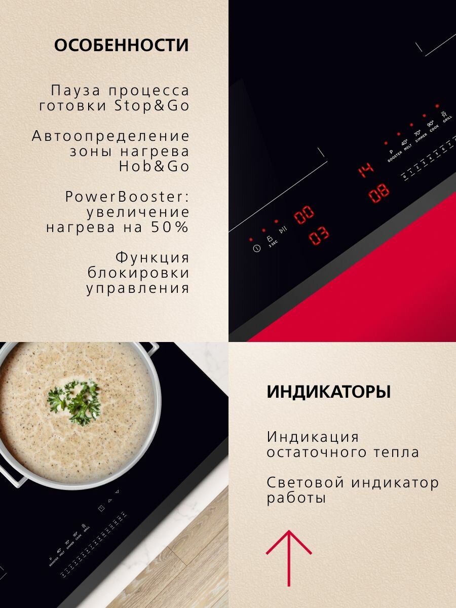 | Функции | кратковременная пауза / распознавание наличия посуды / таймер / Функция Booster |