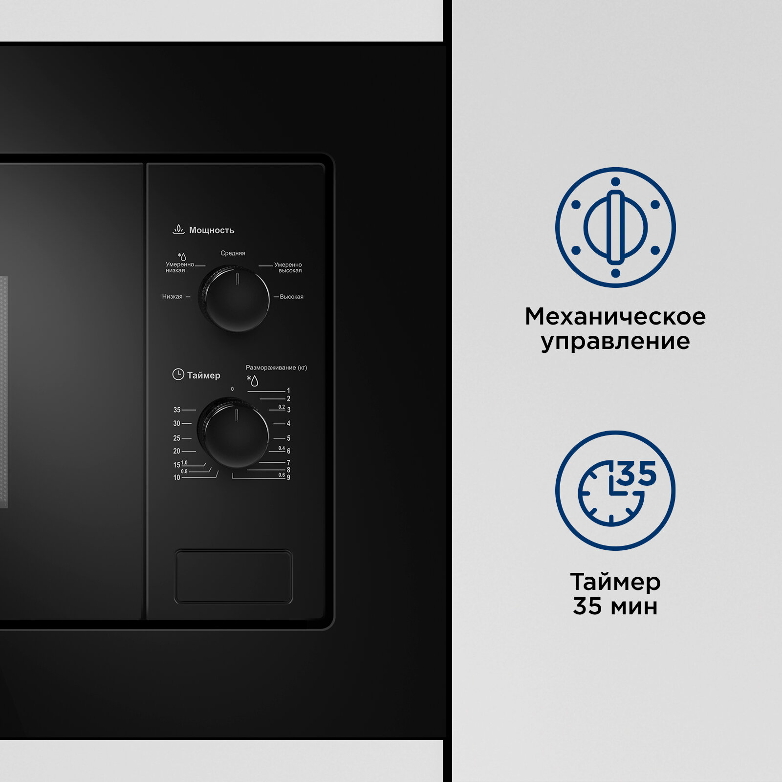 Микроволновая печь встраиваемая MAUNFELD MBMO.20.1PGB2, объем 20 литров, 5 уровней мощности информация: