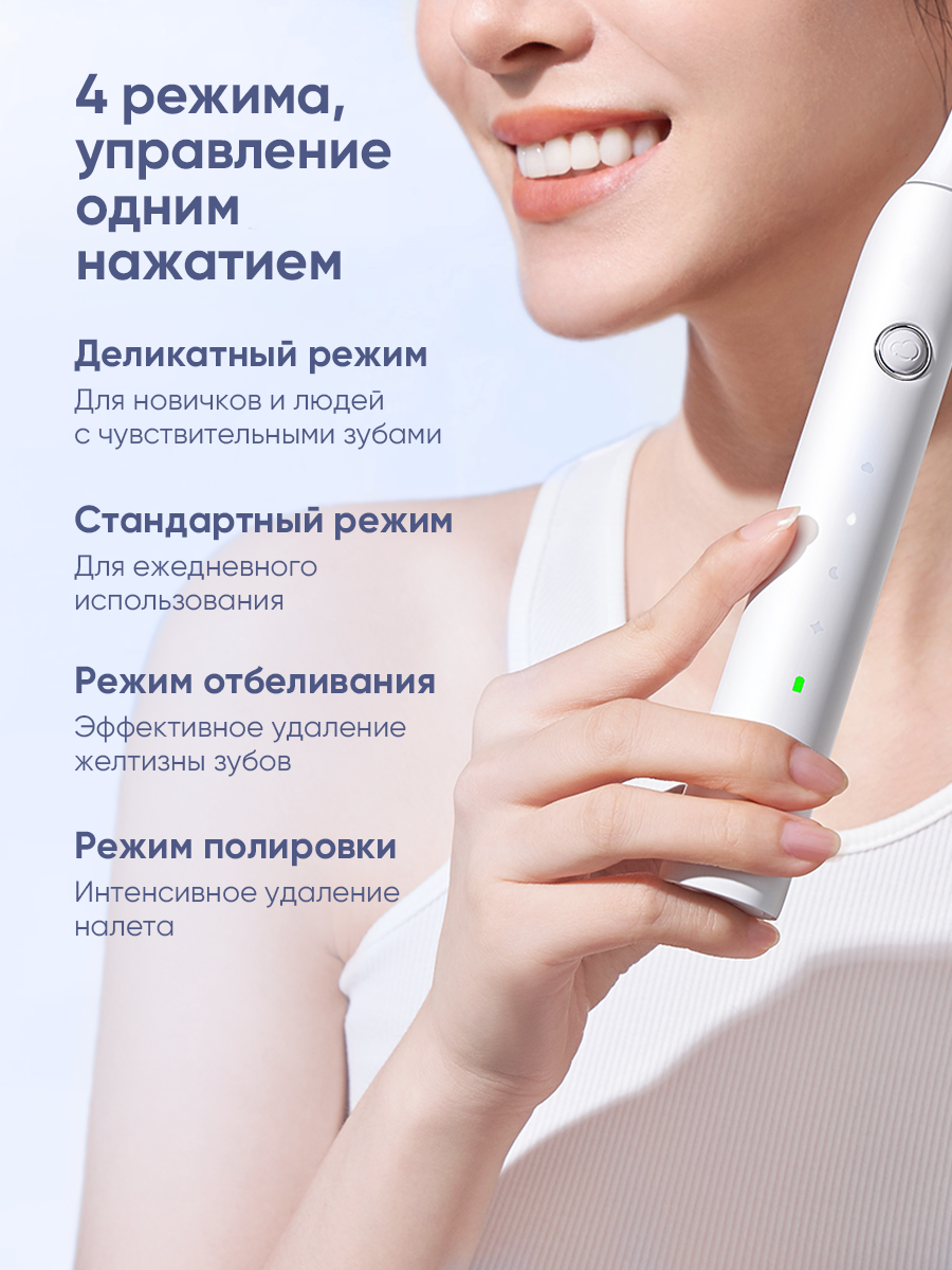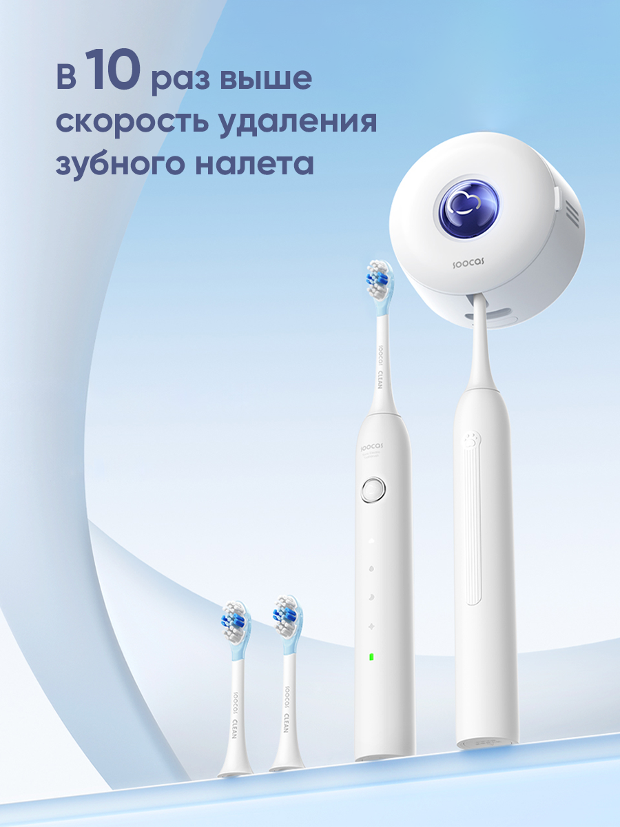 Электрическая зубная щетка SOOCAS Aura, время автономной работы 365 дней , 4 насадки + чехол для хранения, 5 режимов чистки