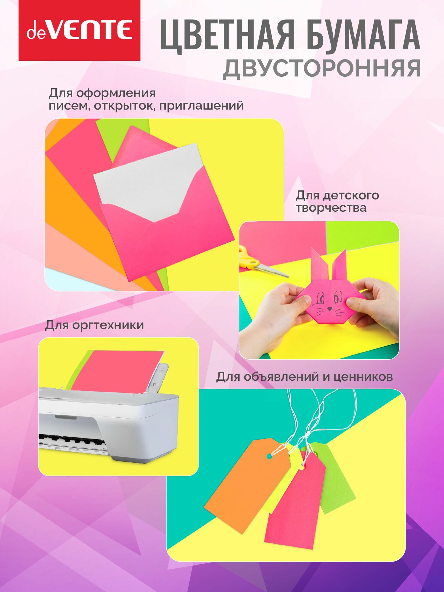 Цветная бумага А4 для принтера, оргтехники 50 л.