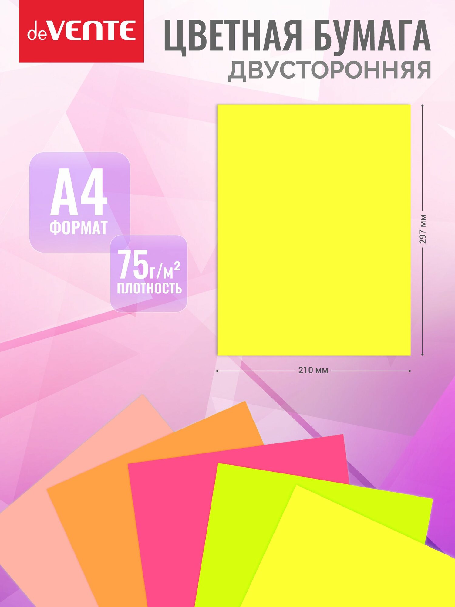 Бумага цветная для офисной оргтехники, принтера. A4 100 л, 75 г/м ассорти информация: