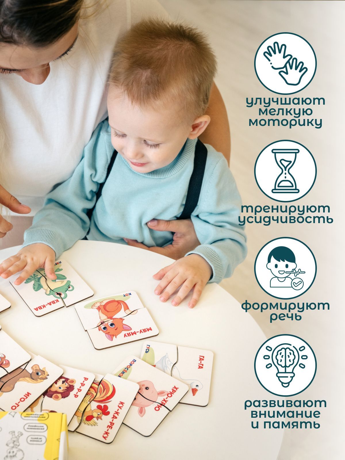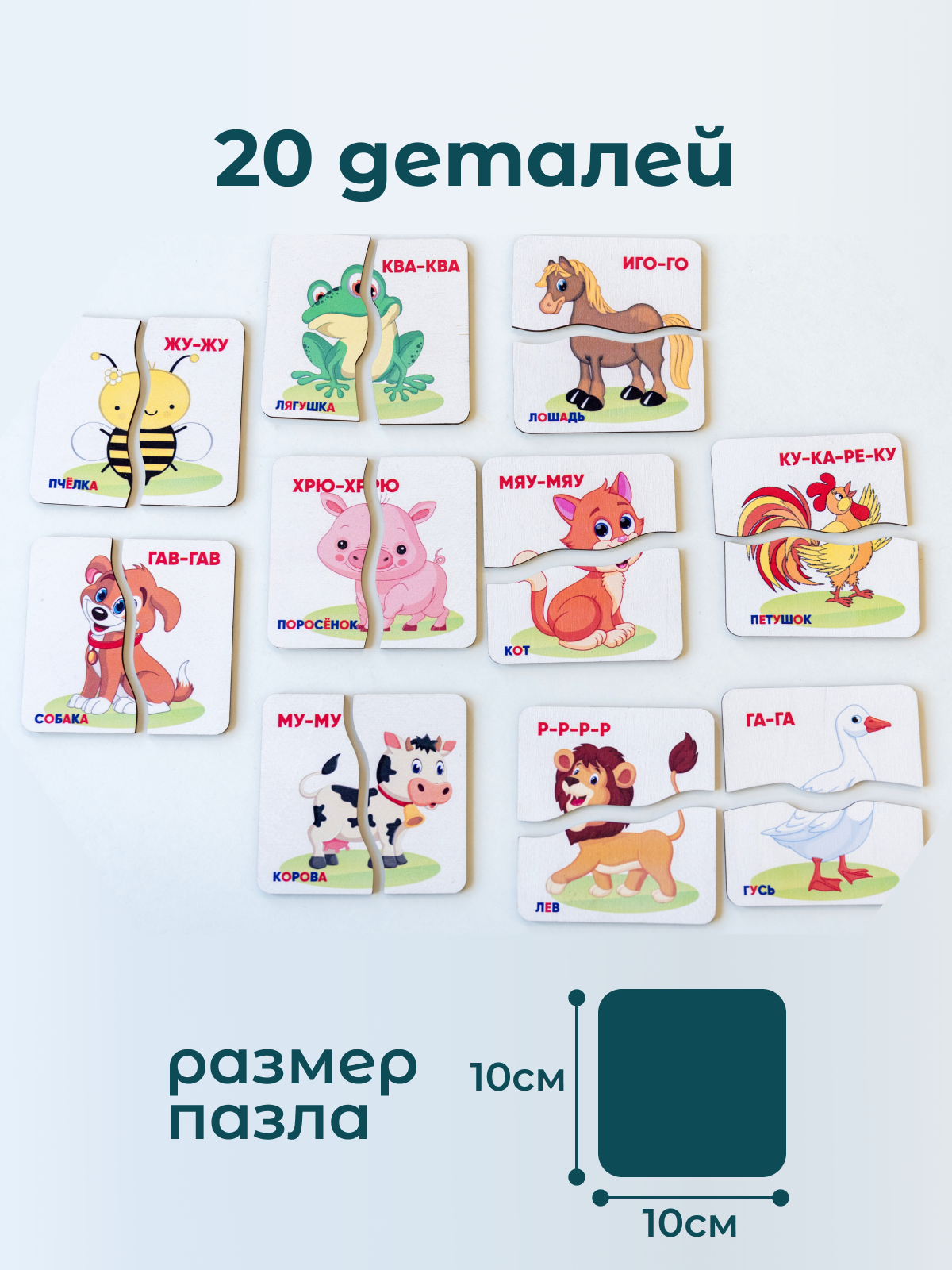 Деревянные пазлы для малышей картинки-половинки "Животные" 10 шт, крупные пазлы, обучающие карточки, развивающие игрушки для малышей