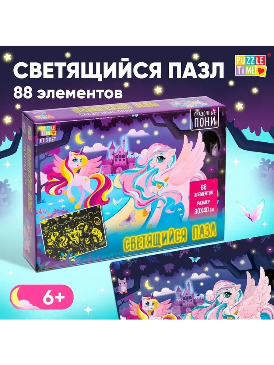 Пазлы светящиеся «Сказочные пони», 88 деталей информация: