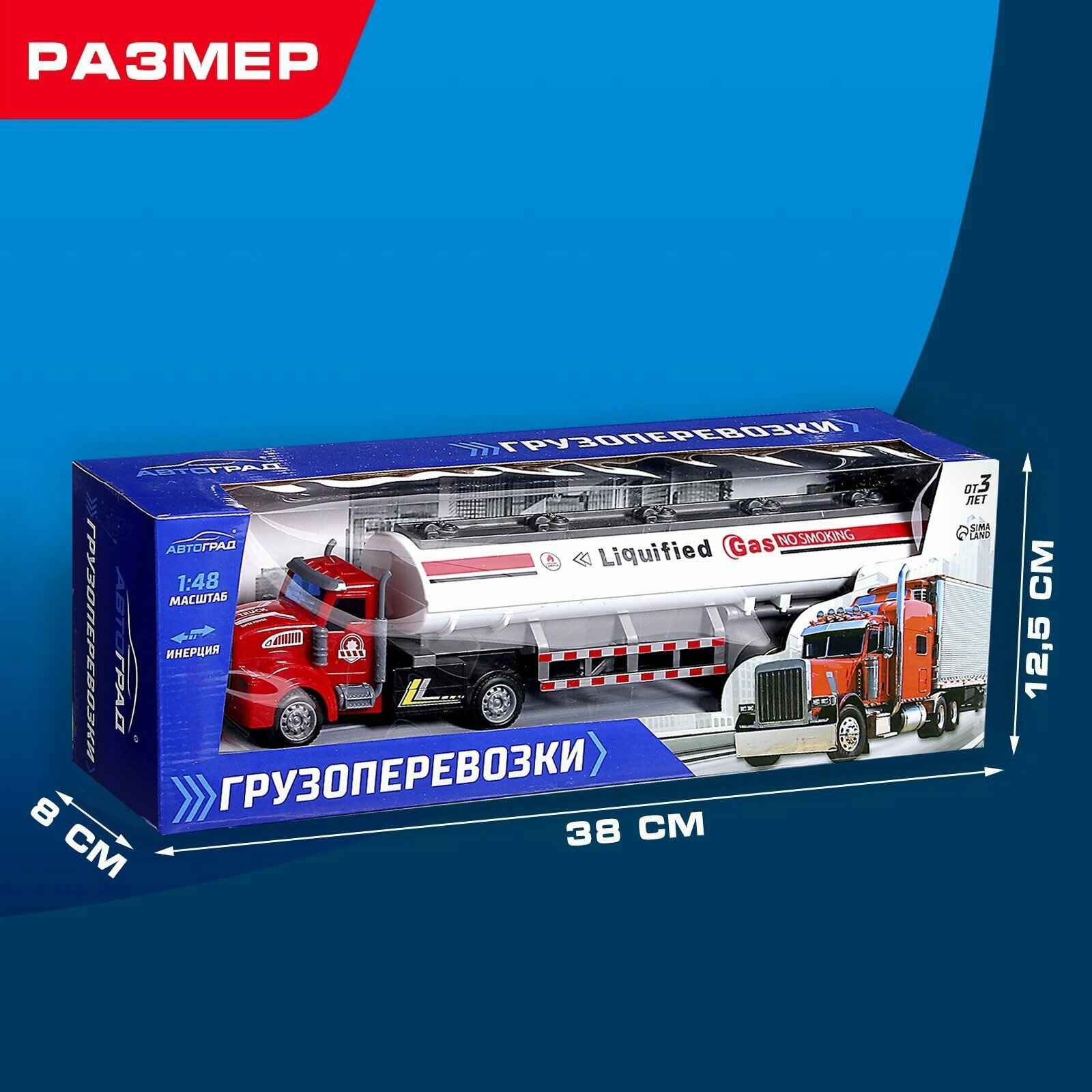 Грузовик инерционный "Бензовоз" масштаб 1:48, 34 см, Автоград информация: