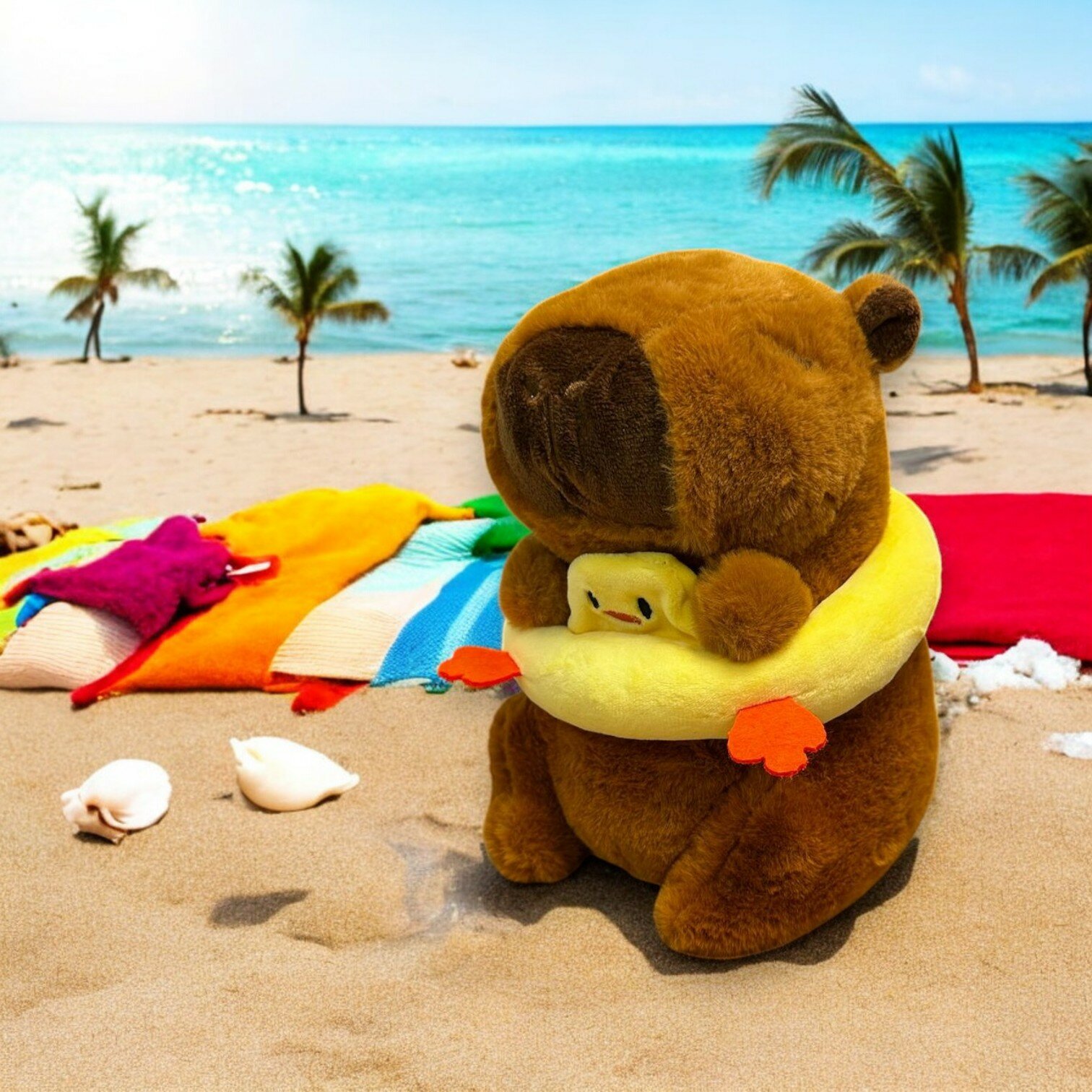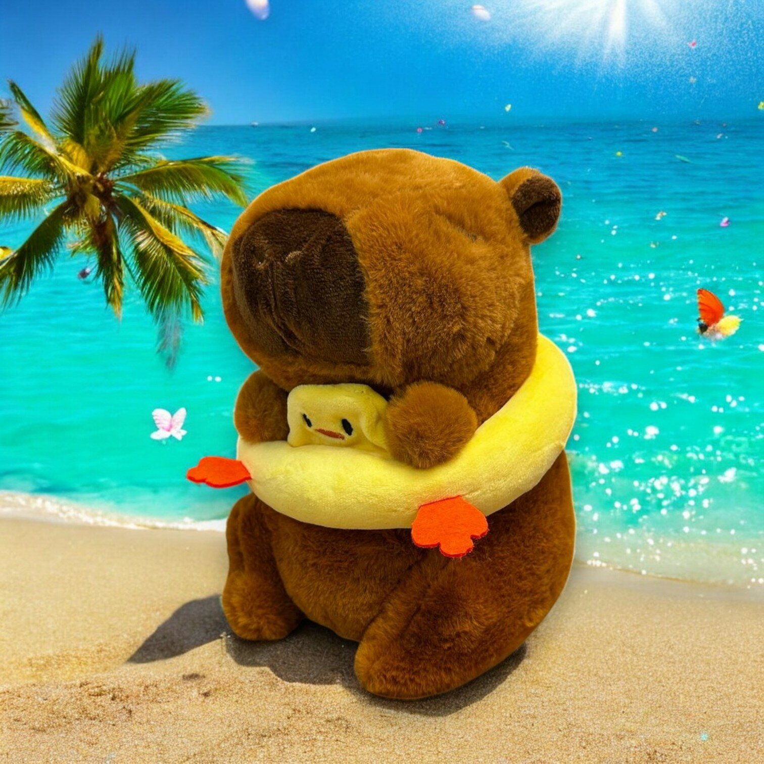 Мягкая игрушка Капибара с кругом утенок 20см информация: