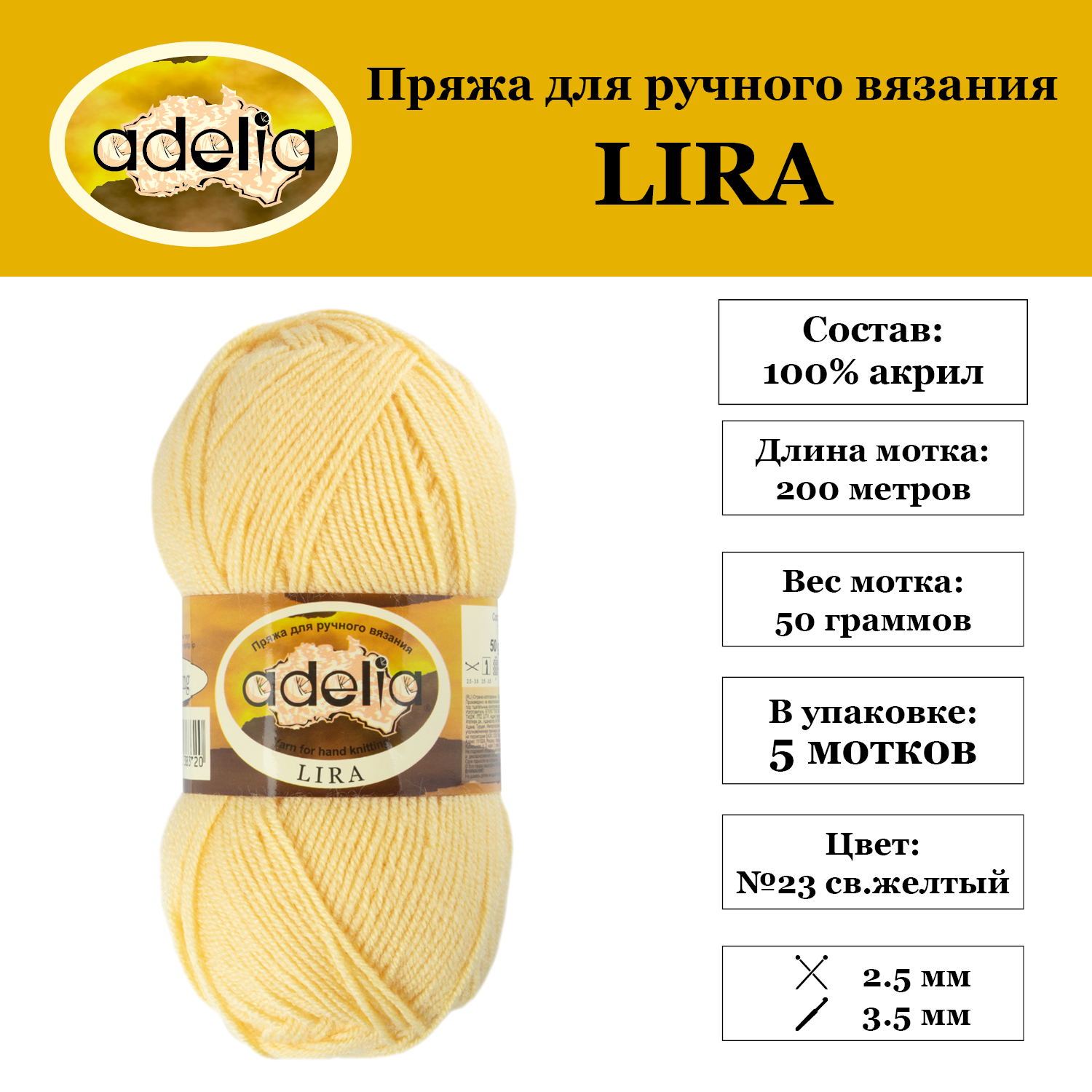 Отзывы на Пряжа Adelia "LIRA" 5 шт. по 50 г. набор, 100% акрил, 200 м. №23 св. желтый