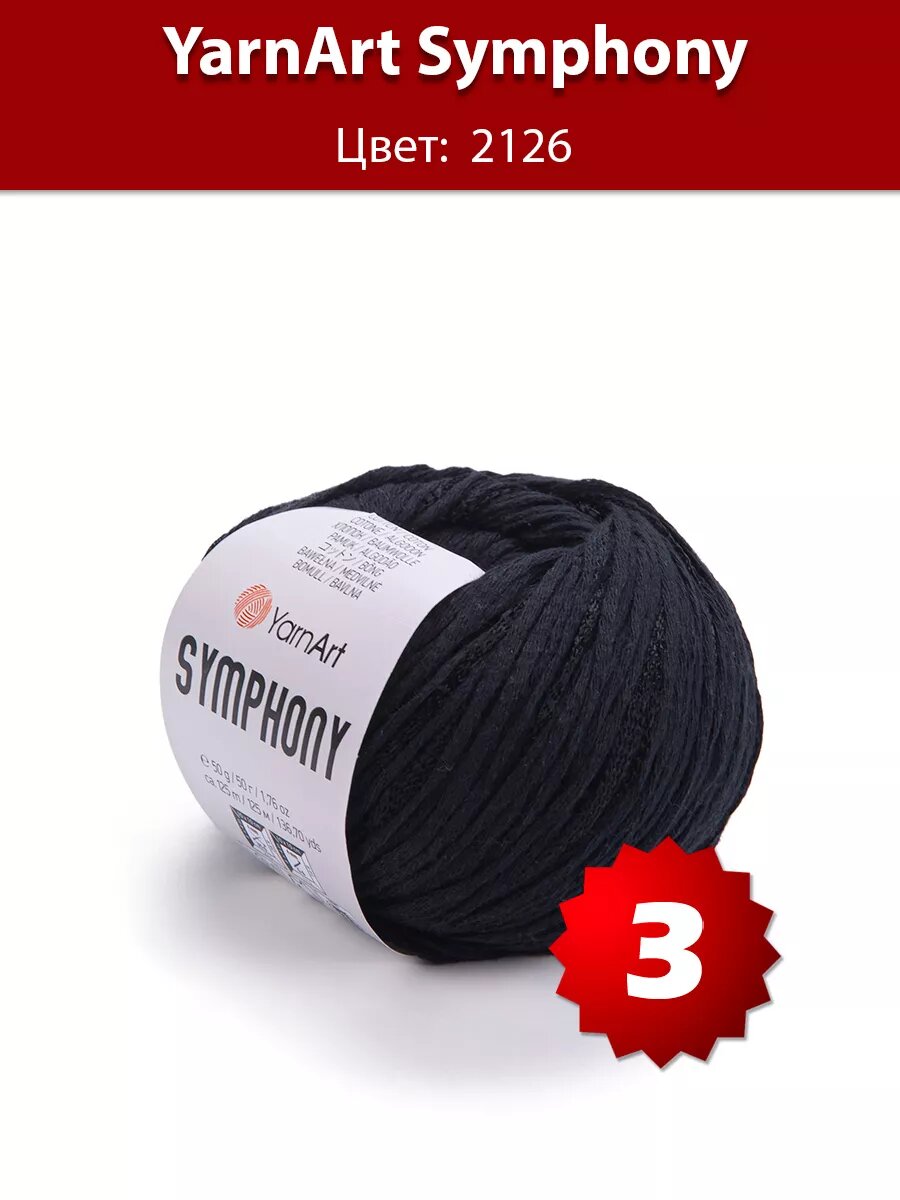 Пряжа YarnArt Symphony черный (2126), 80%хлопок/20%вискоза, 125м, 50г, 2шт 471 ₽