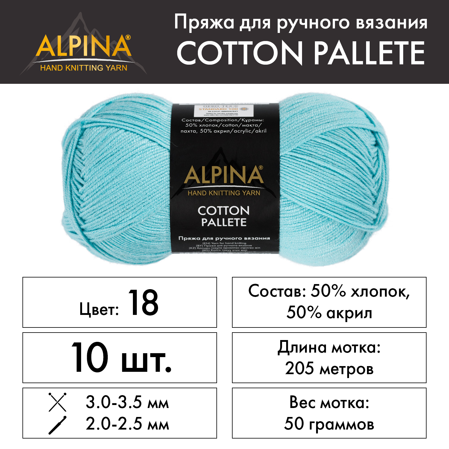 10 цен на Пряжа Alpina "COTTON PALLETE" 10 шт. по 50 г 50% хлопок, 50% акрил 205 м №18 голубой