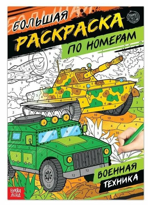 Раскраска по номерам "Военная техника", 16 стр, формат А4 информация: