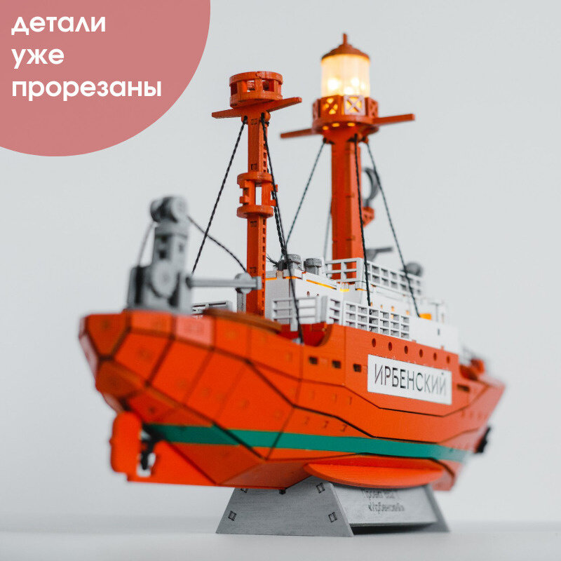 Сборная модель "Корабль маяк Ирбенский (Калининград)" / Деревянный конструктор / модель для сборки корабля / развивающий набор / 3D пазл / конструктор из фанеры / подарочный набор / инженерный конструктор / сборка без клея / корабль из дерева своими рукам информация: