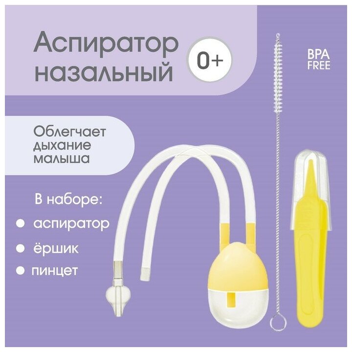 Отзывы на Набор по уходу за ребенком (аспиратор, щеточка, пинцет), цвет желтый, 4826554