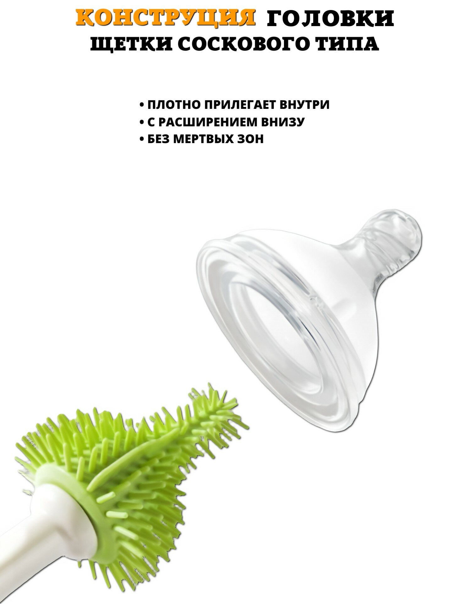 10 цен на Ершик силиконовый Floopsi для детских бутылочек и сосок 3шт, на подставке. Сушилка для ершиков