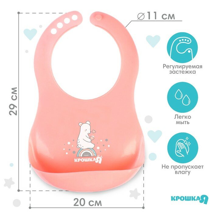 Нагрудник для кормления «Мишка» пластиковый с карманом, цвет розовый, 7091731 информация: