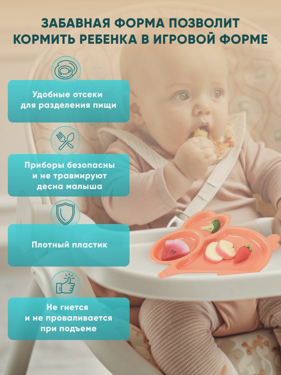 Отзывы на Набор детской посуды для кормления малыша "зайчик", 4 предмета, секционная тарелка, поильник