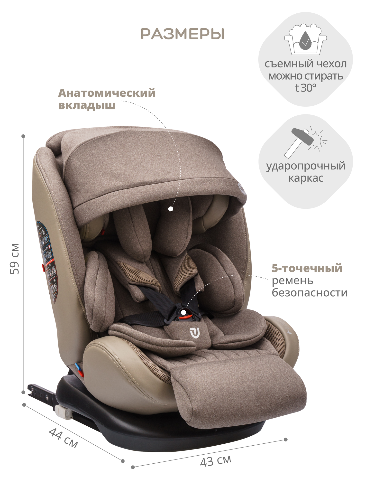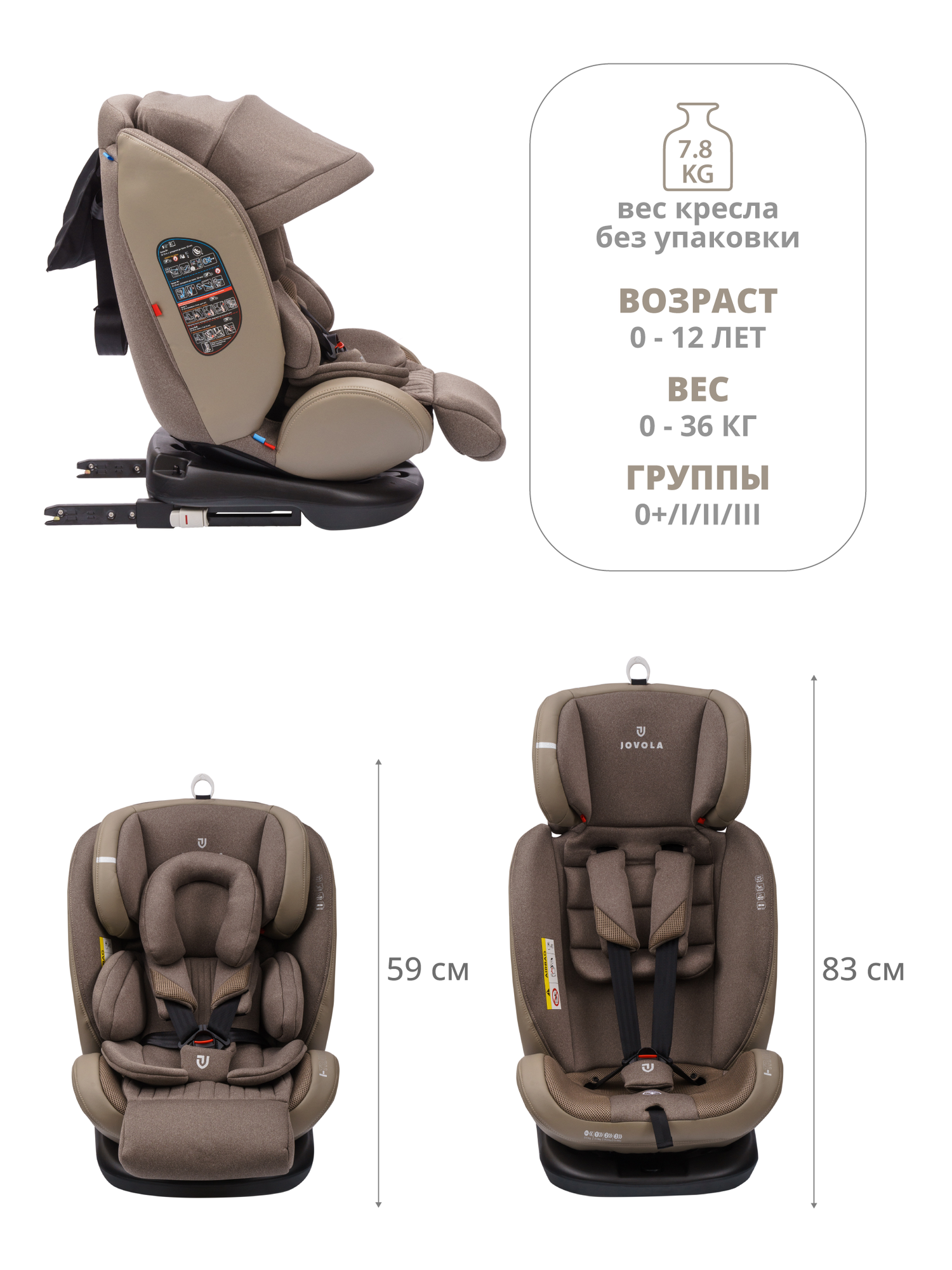 Детское автокресло Jovola I-Travel Isofix растущее, группа 0/1/2/3 (до 36 кг), бежевый информация: