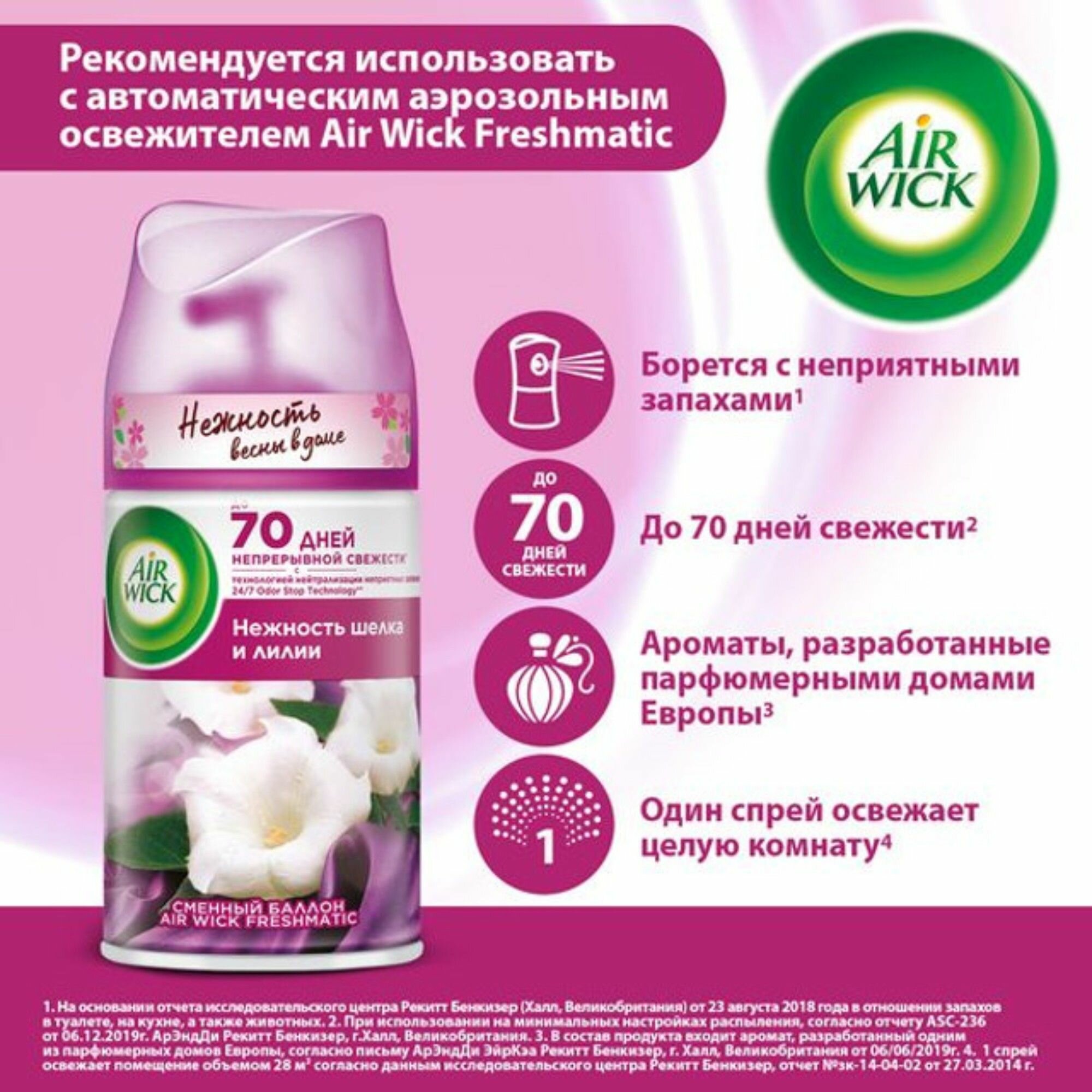 Airwick Запасной блок Freshmatic Нежность шелка и лилия, 250 мл, 3 шт 2 523 ₽