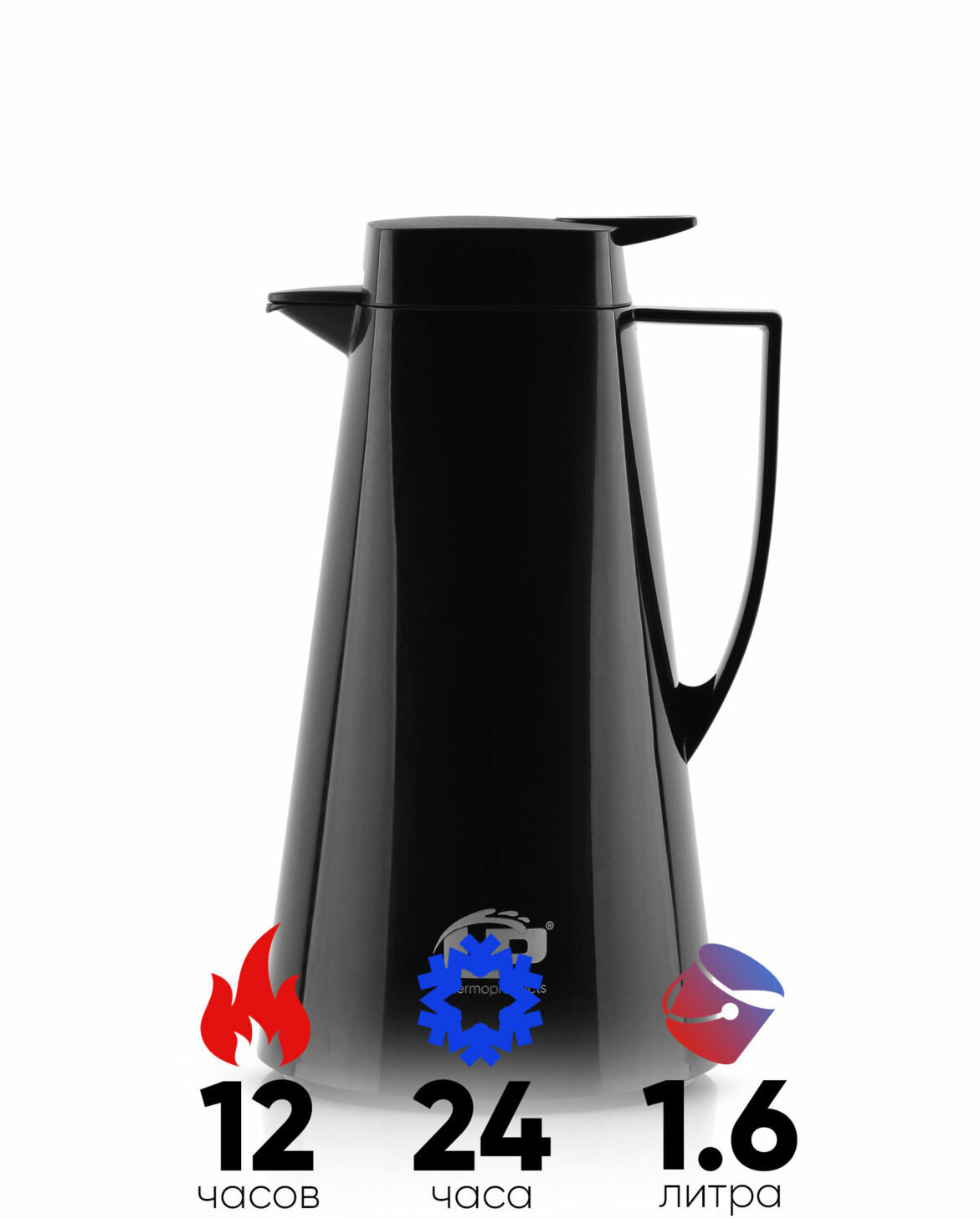 Термос (термокувшин) со стеклянной колбой 1,6 л LP Elegance черный информация: