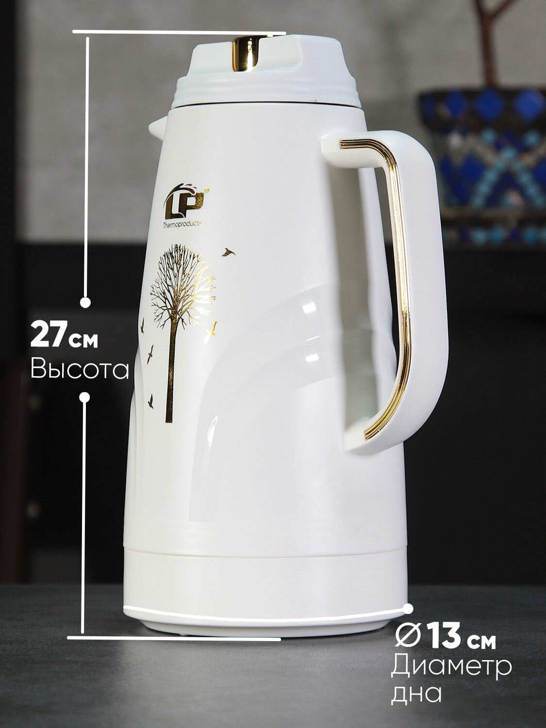 Термос со стеклянной колбой 1л (термокувшин)женский LP Nature белый информация: