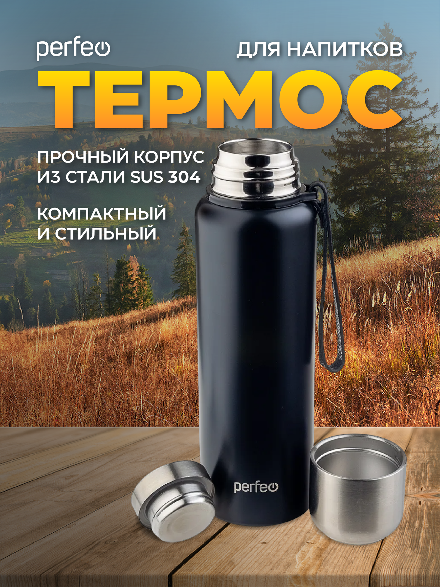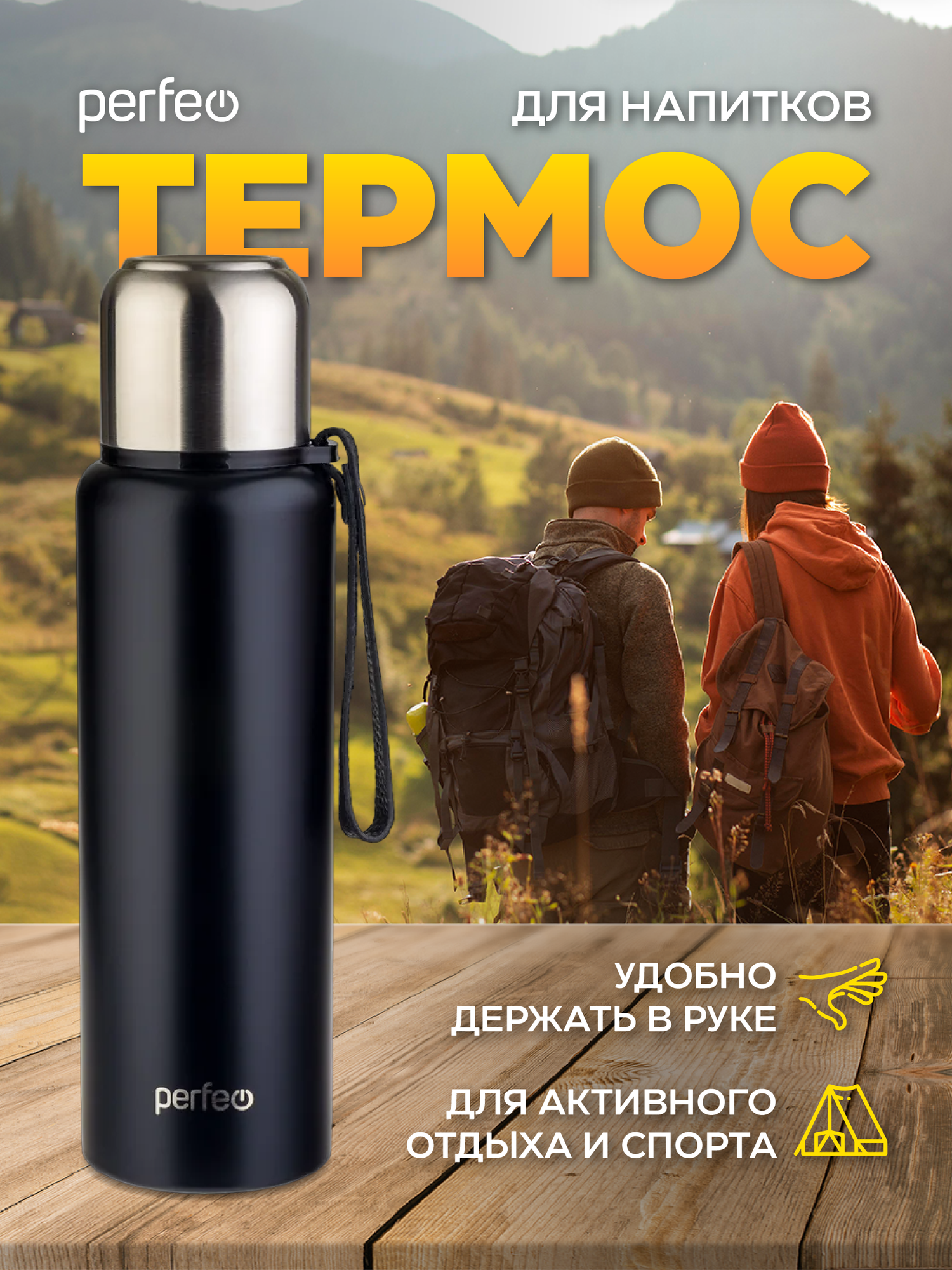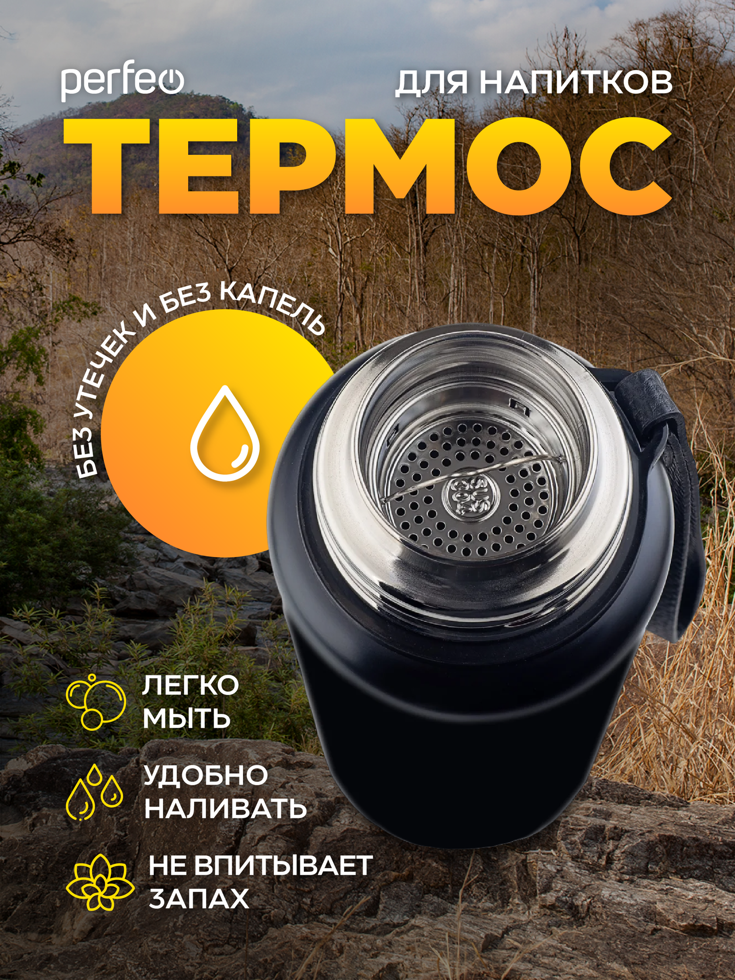 Отзывы на Термос PERFEO для напитков с глухой пробкой, ситечком, ремешком, объем 1 л, черный (PF_C3707)