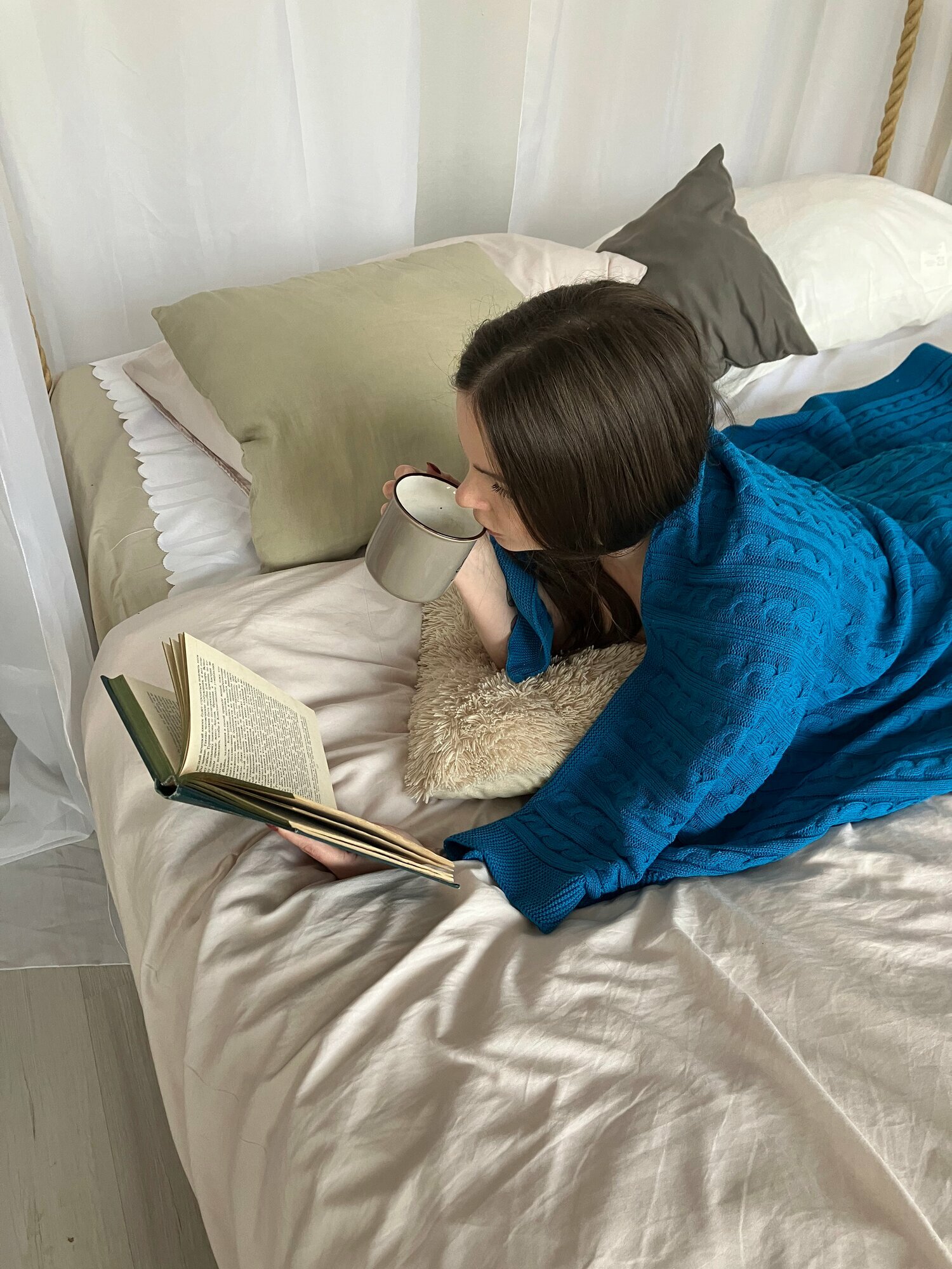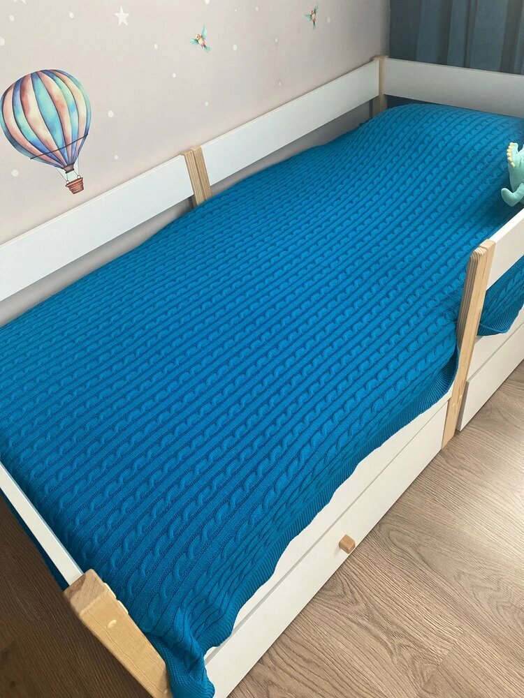 10 цен на Вязаный плед из 100% хлопка, 110х160 см, голубой