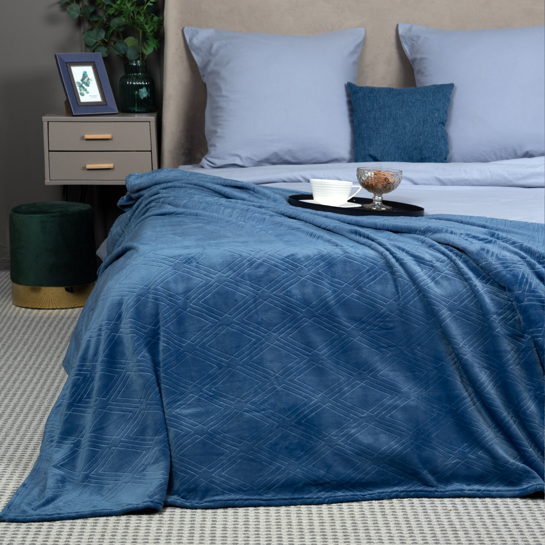 10 цен на Плед Galtex "Константа серо-синий", 200x220 см, велсофт, 100 % полиэстер