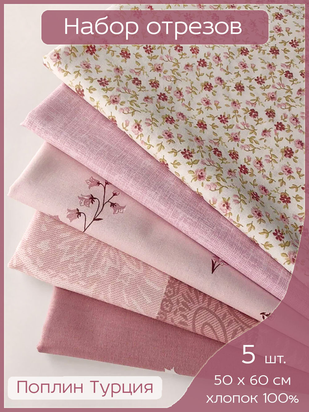 10 цен на Ткань для шитья, рукоделия, 100% хлопок поплин Турция, набор тканей для пэчворка розовый, 5 отрезов 50 х 60 см