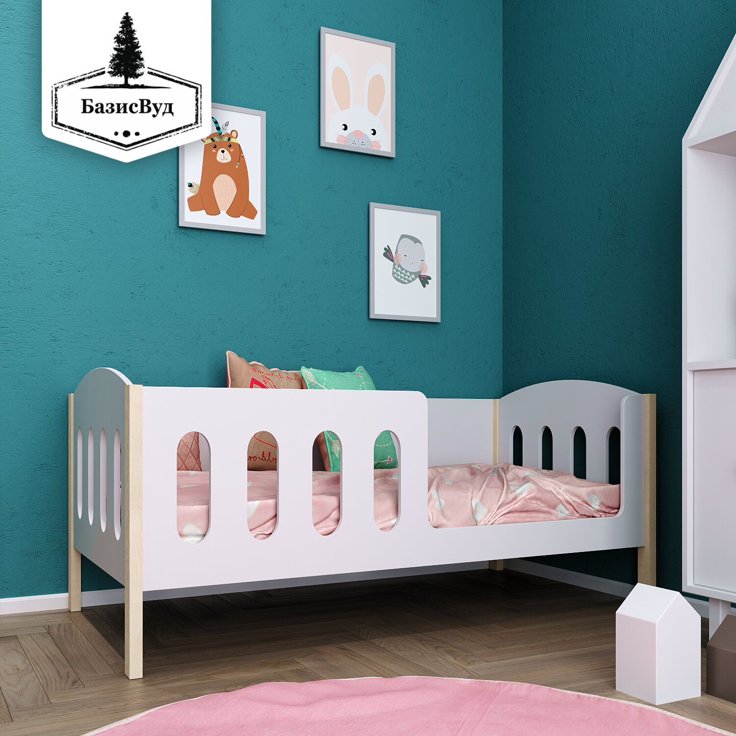 10 цен на Кровать детская с бортиком 160х80, классик, БазисВуд, вход справа, ножки массив сосны, цвет натуральное дерево