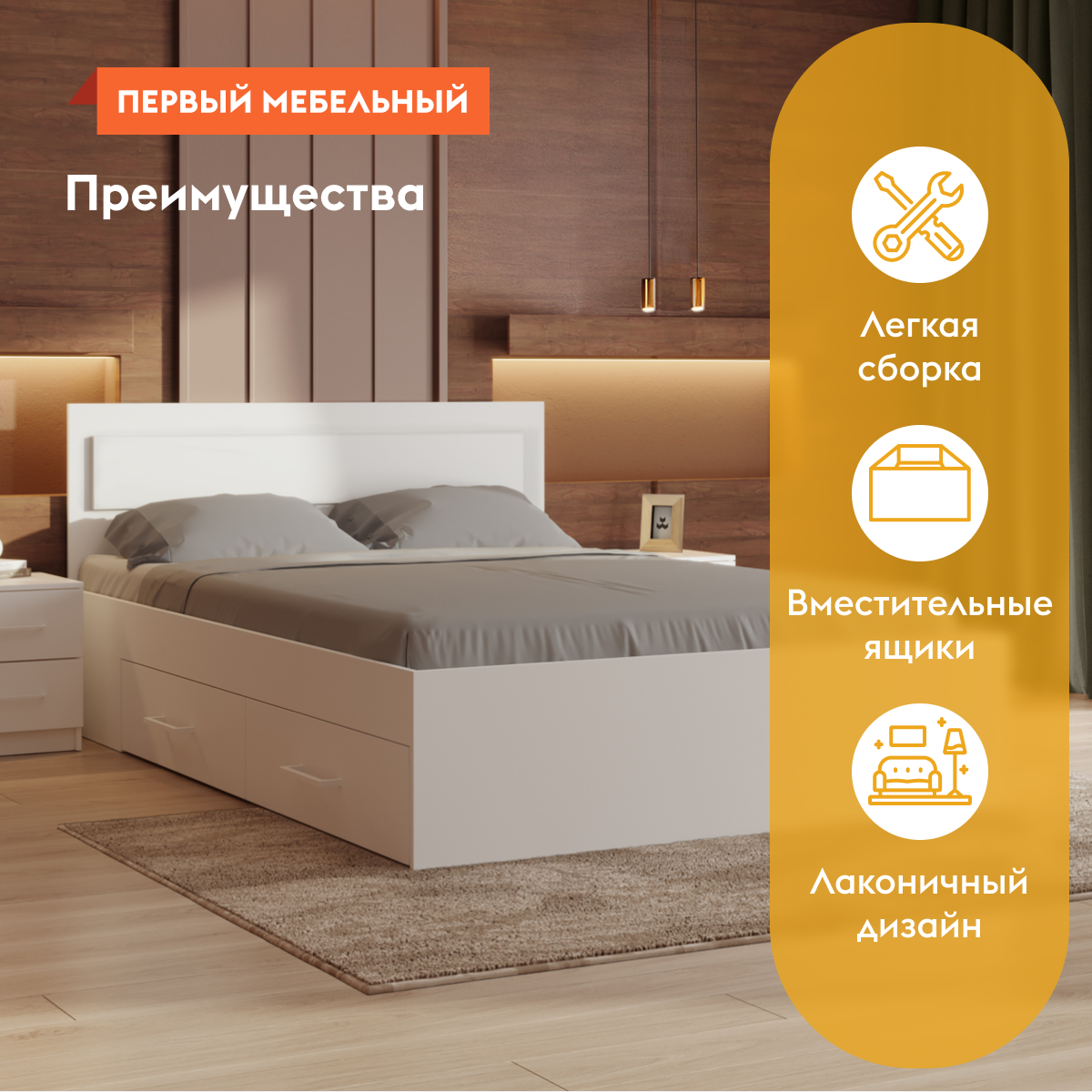 Двуспальная кровать Жаклин 140х200 см, основание настил, с ящиками, Белый 9 355 ₽