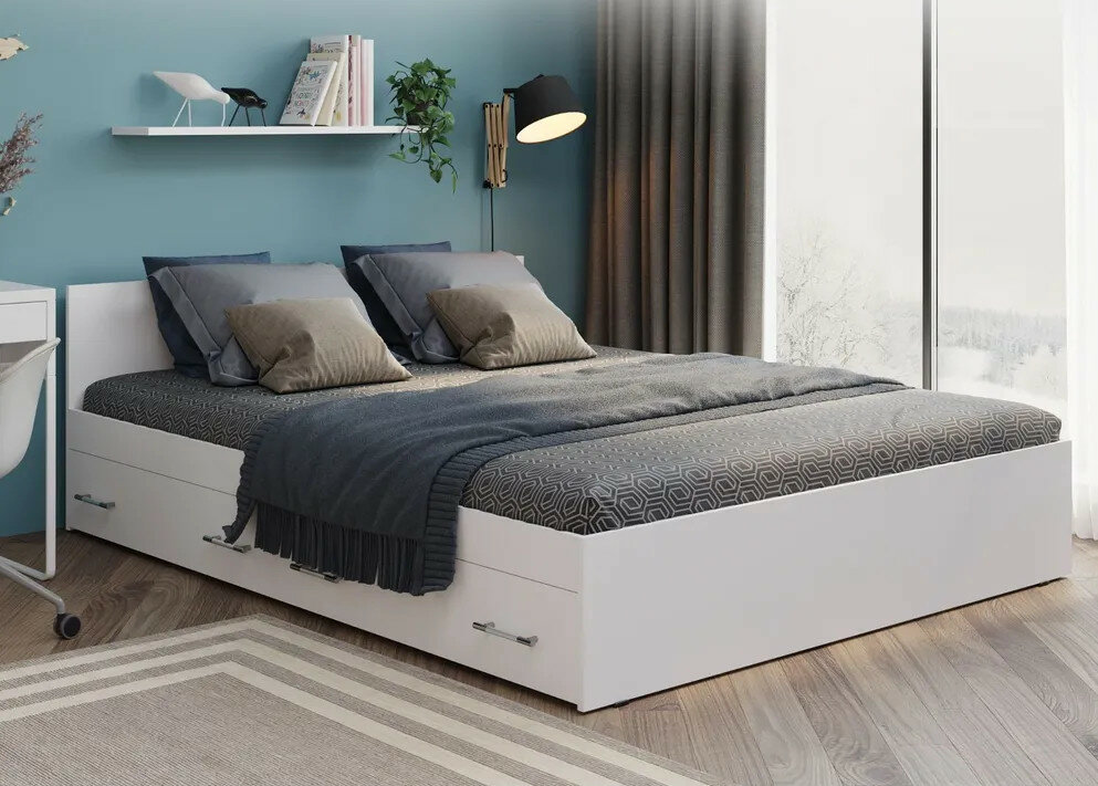Кровать белая с ящиками Стандарт 1800, цвет белый, ШхГхВ 183,5х203,5х70 см, сп. м. 1800х2000 мм, без матраса, основание есть