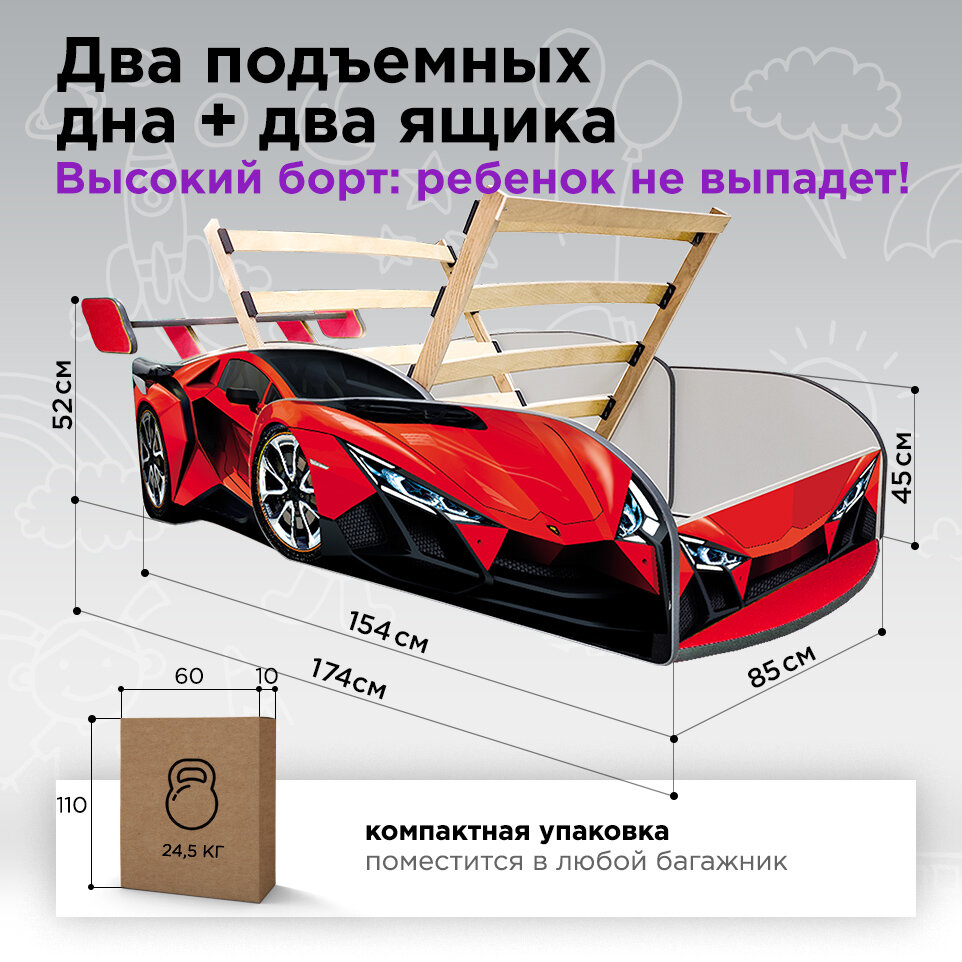 Кровать машина «Ламба Лайт 4.0» детская кровать для мальчика Красная - 174/85/49см информация: