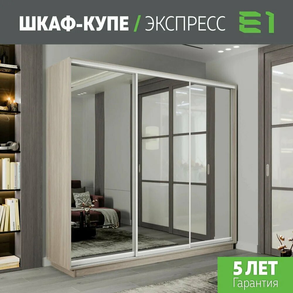 Шкаф-купе Экспресс 3-х дверный, Зеркала, 180х60х220, Мебельная компания Е1, Сонома 34 756 ₽