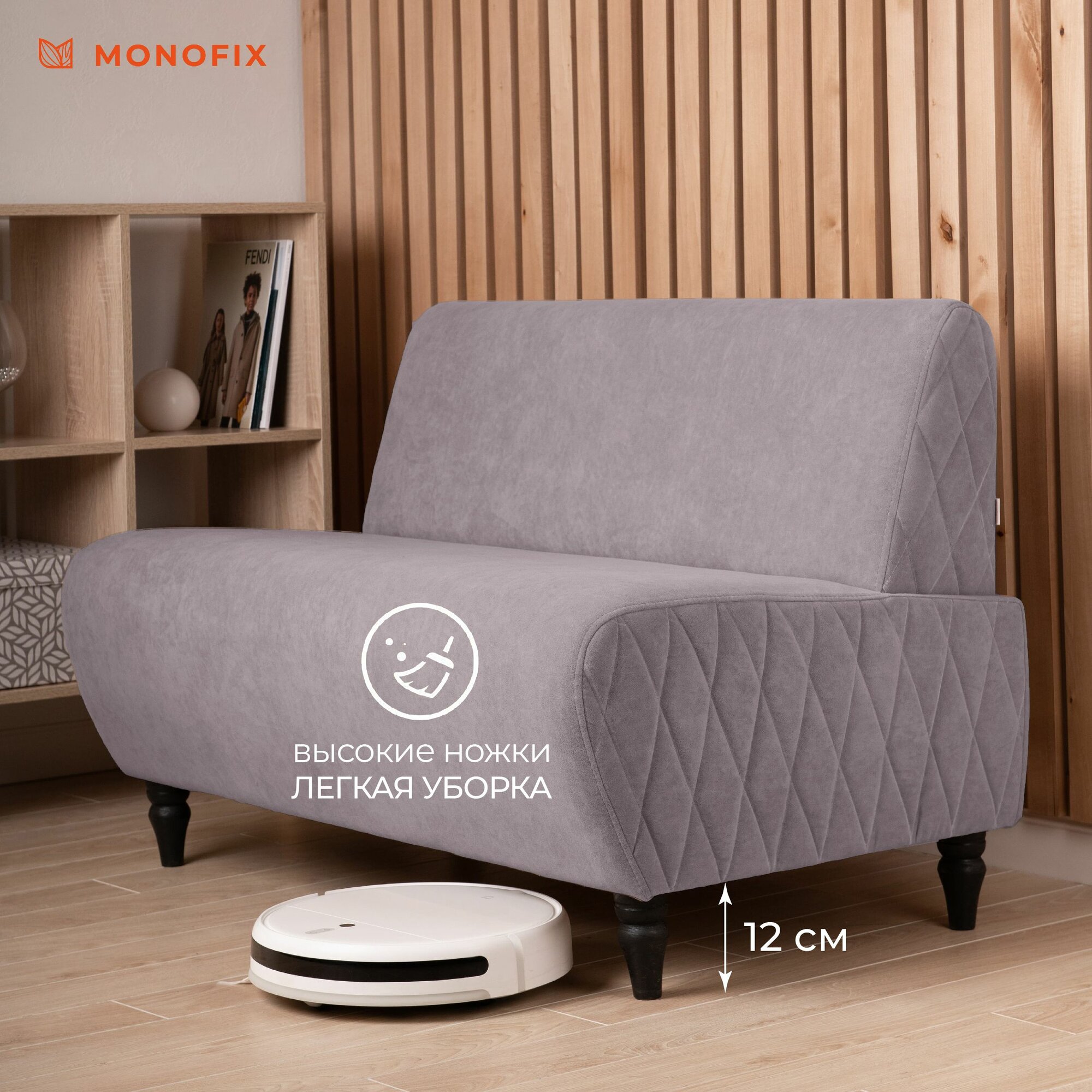 Прямой диван MONOFIX буно, велюр светло-серый (№7), 110х67х73 см (ШхГхВ) 13 673 ₽
