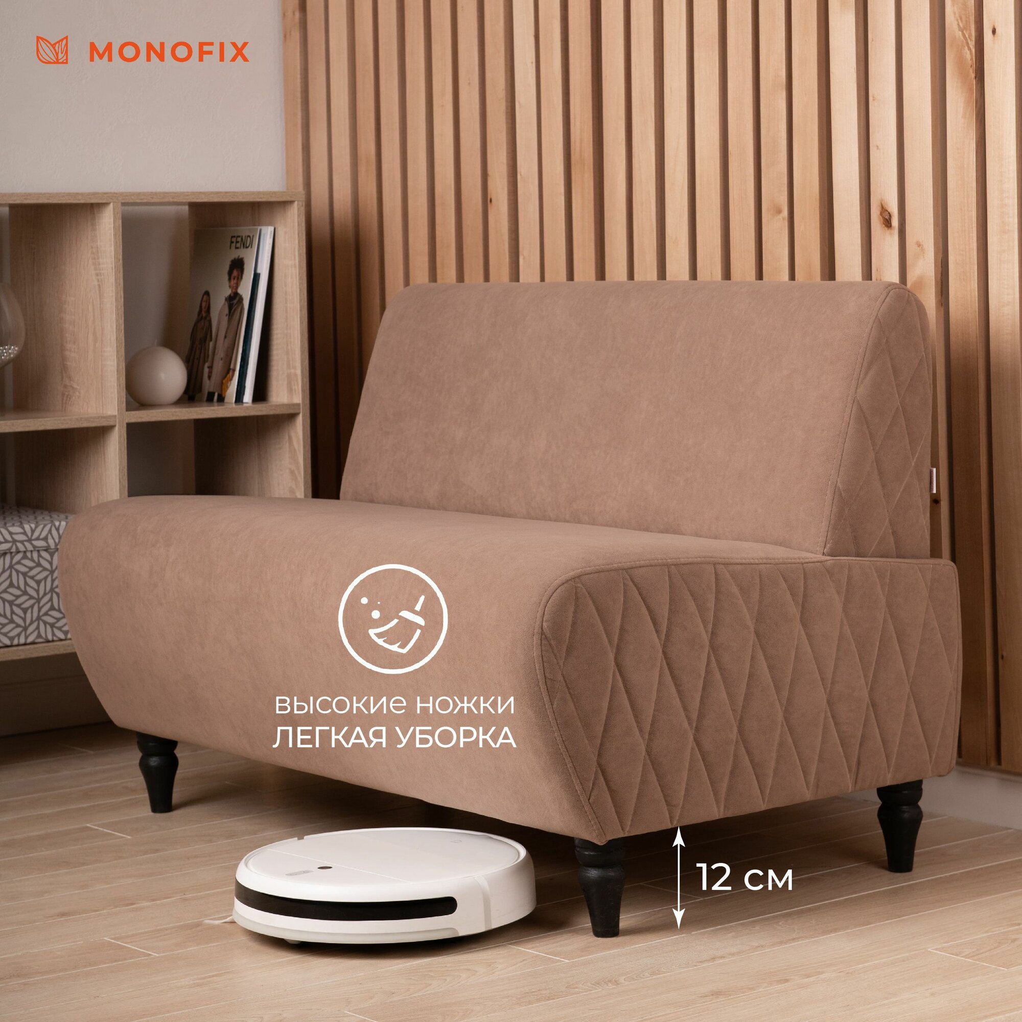Прямой диван MONOFIX буно, велюр светло-коричневый (№22), 110х67х73 см (ШхГхВ) информация: