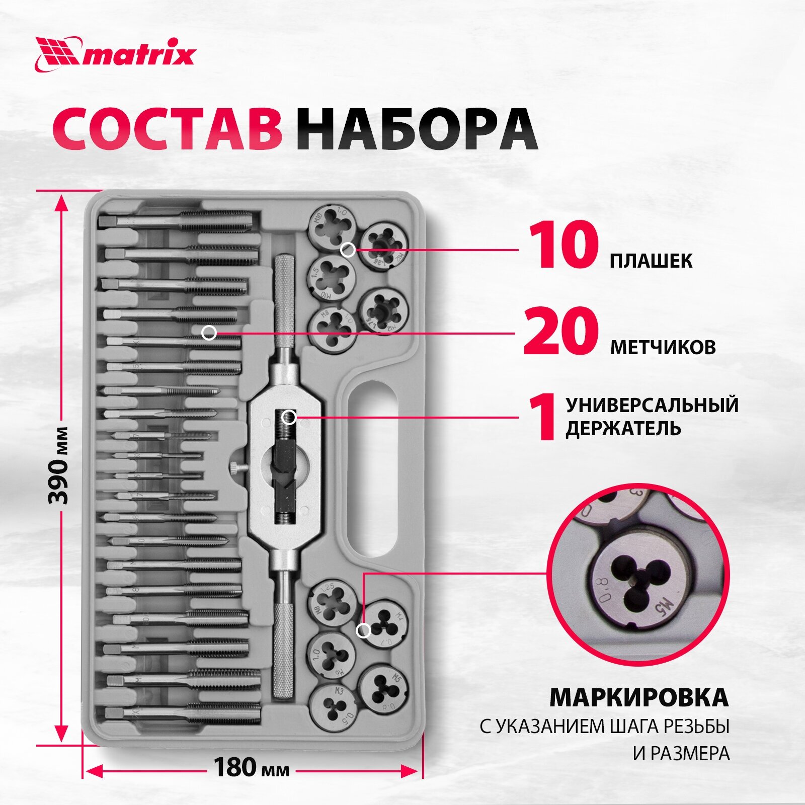 10 цен на Набор метчиков и плашек Matrix М3 - М12, 31 предметов 77337