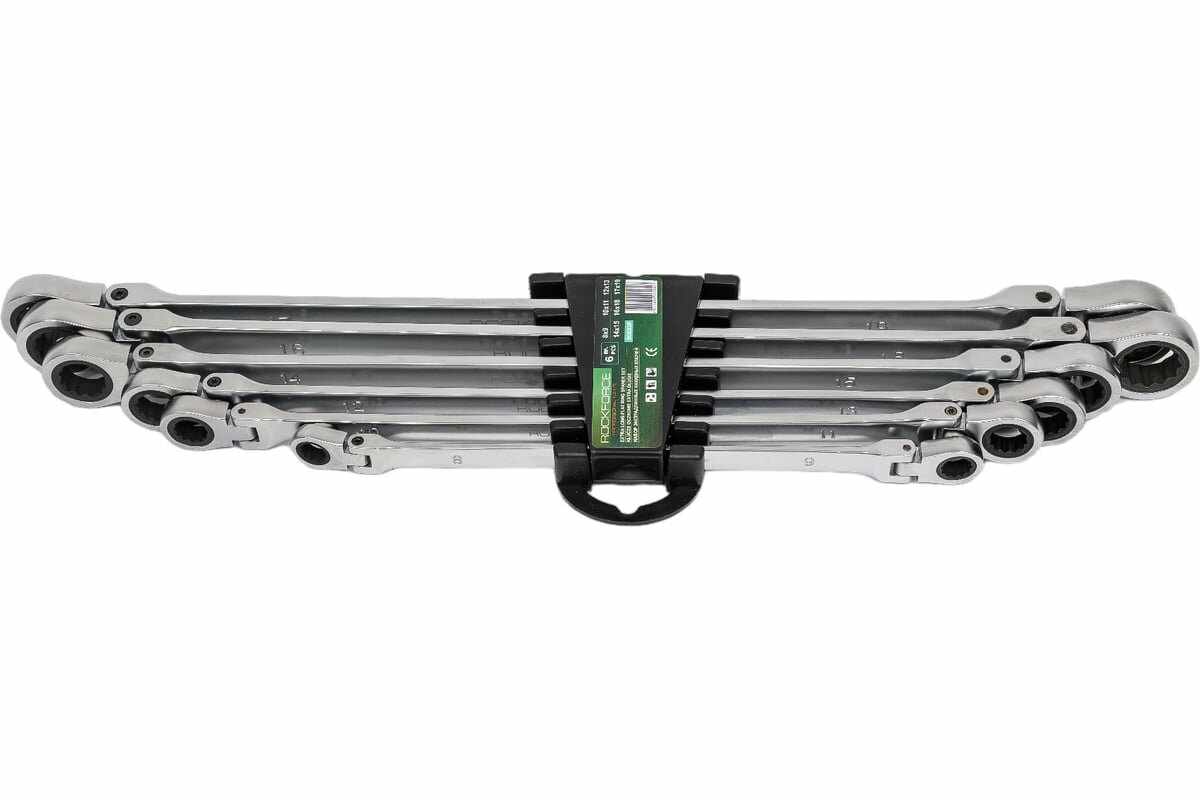 Ключи накидные экстра длинные трещоточные, набор 6пр. (8х9, 10х11, 12х13, 14х15, 16х18, 17х19мм) Rock FORCE RF-50622F