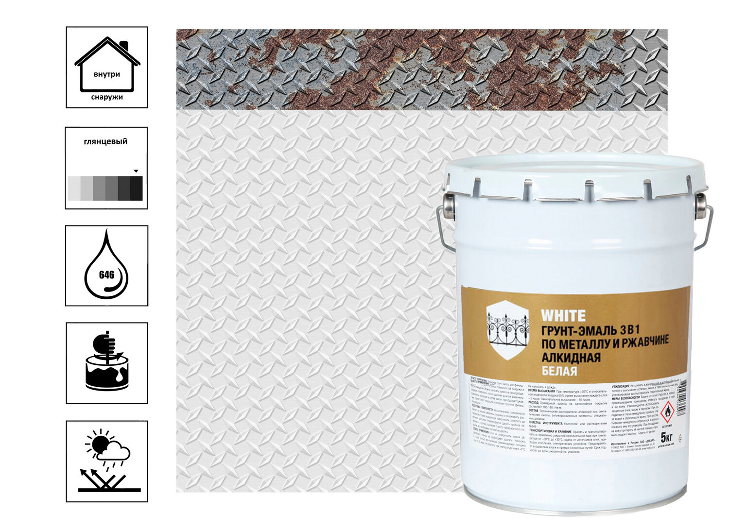 Грунт эмаль 3 в 1 стандарт белая (5кг) информация: